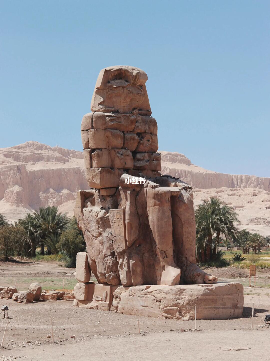 ③门农巨像(图9-10):’当尼罗河的风吹过这两尊石像时,他们会唱起古老的歌谣’。门农巨像是法老阿蒙霍特普三世的雕像,如今神庙已不见踪影只剩这两尊高18米的石像。