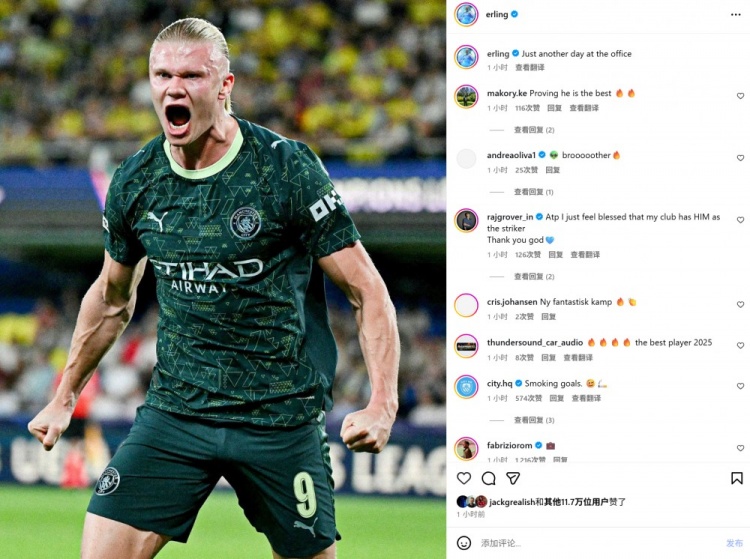 连续12场破门,哈兰德社媒晒照:不过又是普普通通上班的一天