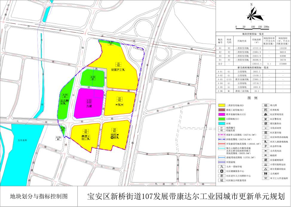 同在16日这天,深圳市规划和自然资源局宝安管理局公告宣布,《宝安区新桥街道107发展带康达尔工业园城市更新单元规划》已获得审定通过。