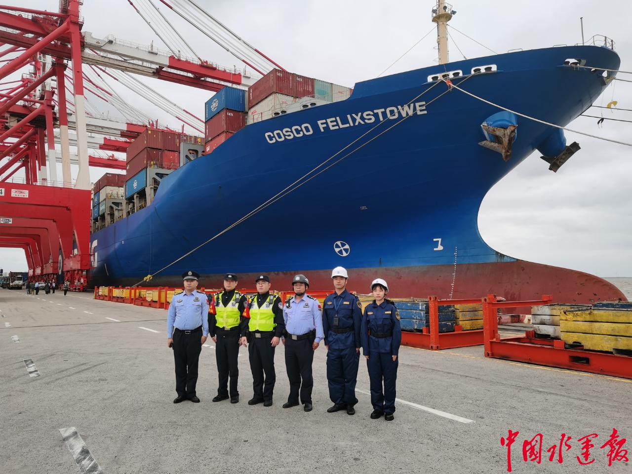 10月21日11时30分,载运着第八届中国国际进口博览会新西兰特色乳制品及手工艺品的“中远费力克斯托”轮安全靠泊在外高桥二期码头。此时,浦东海事局与外高桥边检站的执法人员已早早等候在泊位,做好了联合开展登临检查各项准备工作,确保了展品顺利入境并转入后续的运输程序。