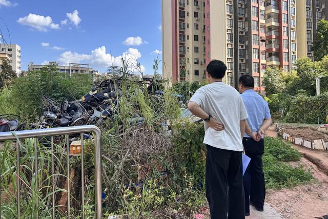 “这堆破车烂在菜地里有十多年了,一直没人管,这怎么行啊!”2025年5月,肇庆市广宁县人民检察院接到群众举报,称南街街道御景国际小区旁的菜地里堆放着一堆“僵尸车”已有十年之久,相关职能部门置之不理。