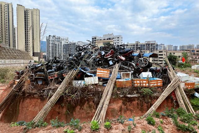 公益诉讼检察官迅速行动,主动履职。经调查走访了解,十多年前,御景国际小区的物业管理处将小区内多年无人认领的废弃摩托车、电动车、自行车等全部运到小区旁边一菜地里堆放,没有采取任何遮挡措施。遥遥望去,这些“僵尸车”层层堆叠,像座小山一样矗立在菜地中央,周围则是附近村民种植的绿油油蔬菜,十分刺眼。经十余年的风吹、雨淋、暴晒,上述废弃车辆已残破不堪,零部件生锈脱落,机油汽油等渗入黄泥地,有污染环境之虑,损害社会公共利益。