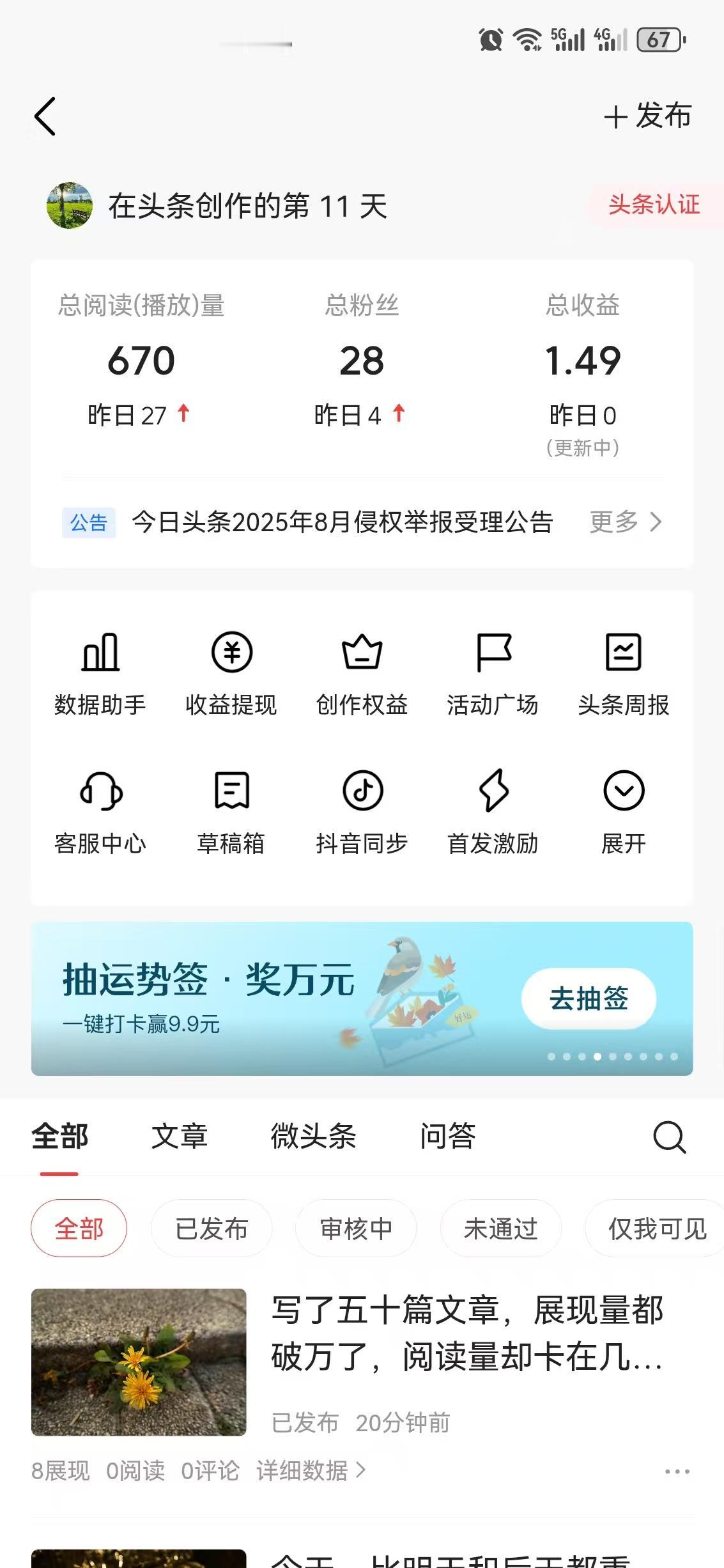 我有一个重大发现: 挣钱不容易,花钱却太容易了。 如今足不出户,钱也能轻轻松松花出去。 今年秋天冷得像提前入了冬, 真叫我们这些做母亲的措手不及。 孩子每个季节总得添新衣, 这次连羽绒服都得早早备齐。 天这么冷, 有手机倒是方便, 不用出门也能“逛街”。 拿起手机刷会儿某宝, 就给孩子买了一身衣服, 花掉五百多,这还不包括鞋子。 回头再看看我的头条, 收益还是零。 哎,真是花钱如流水, 挣钱如接露水。