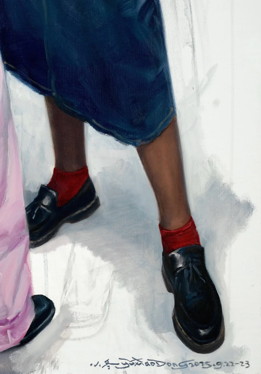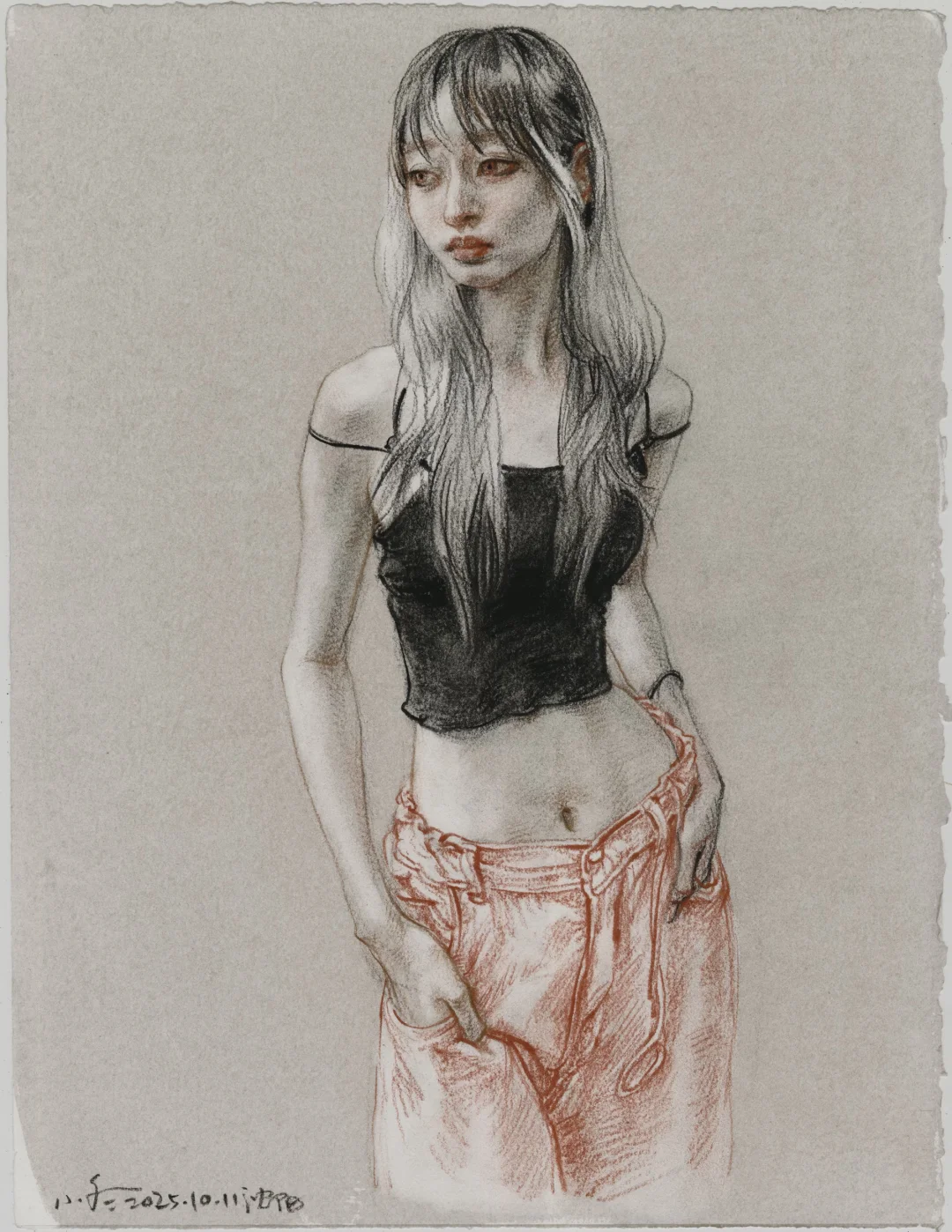 🎨研究生人体素描课 第一周画臃肿老奶奶示范素描基本功 第二周终于开始油画写生,两位养眼的模特登场了✨ 👩🏾🦱香侬:来自法国的黑人女孩 近1米9的超模身高 真的有走秀经验! 全班都在仰头看她的大长腿👀 👩🏻🦰柯艾:天美现代学院的时代女孩 蓝发配粉裤超级抢眼 最绝的是A4纸宽的细腰! 穿着蜘蛛网吊带背心 全班都在抢着画她的美背🕸️ 150X90CM大幅油画写生 2025.9.22-23两天完成 这场视觉盛宴太值了!
