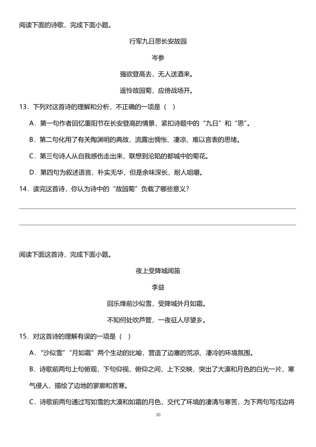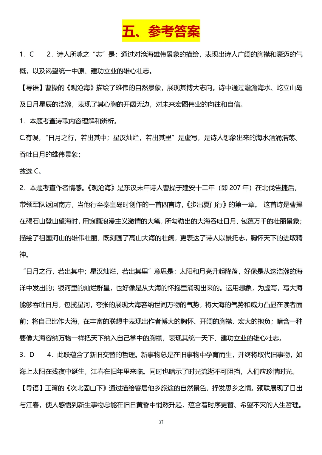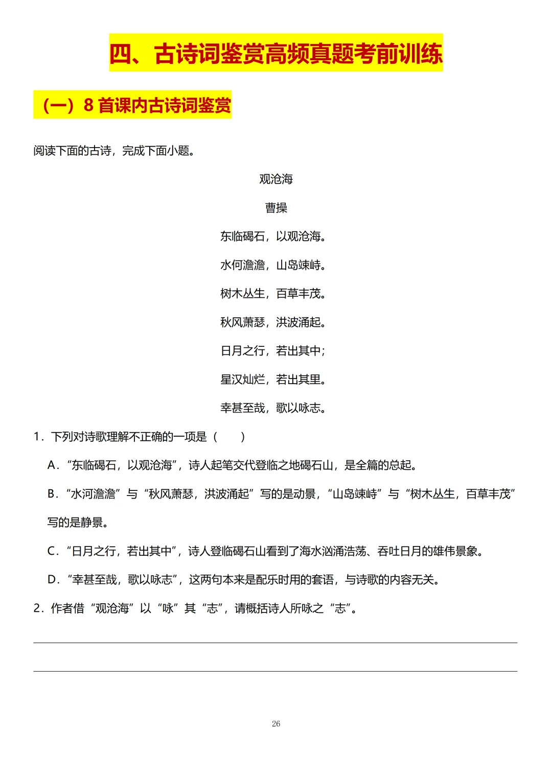此外,还给大家汇总了20道古诗词鉴赏高频真题和答案