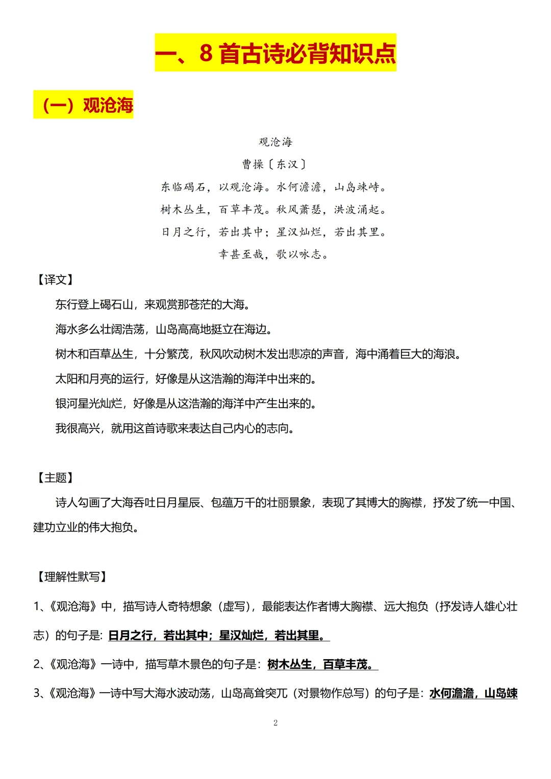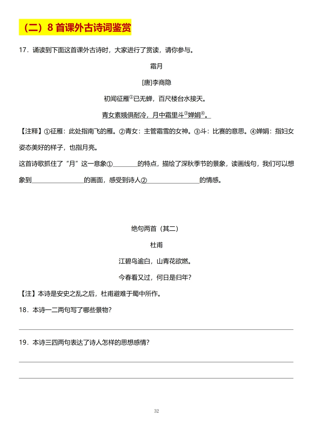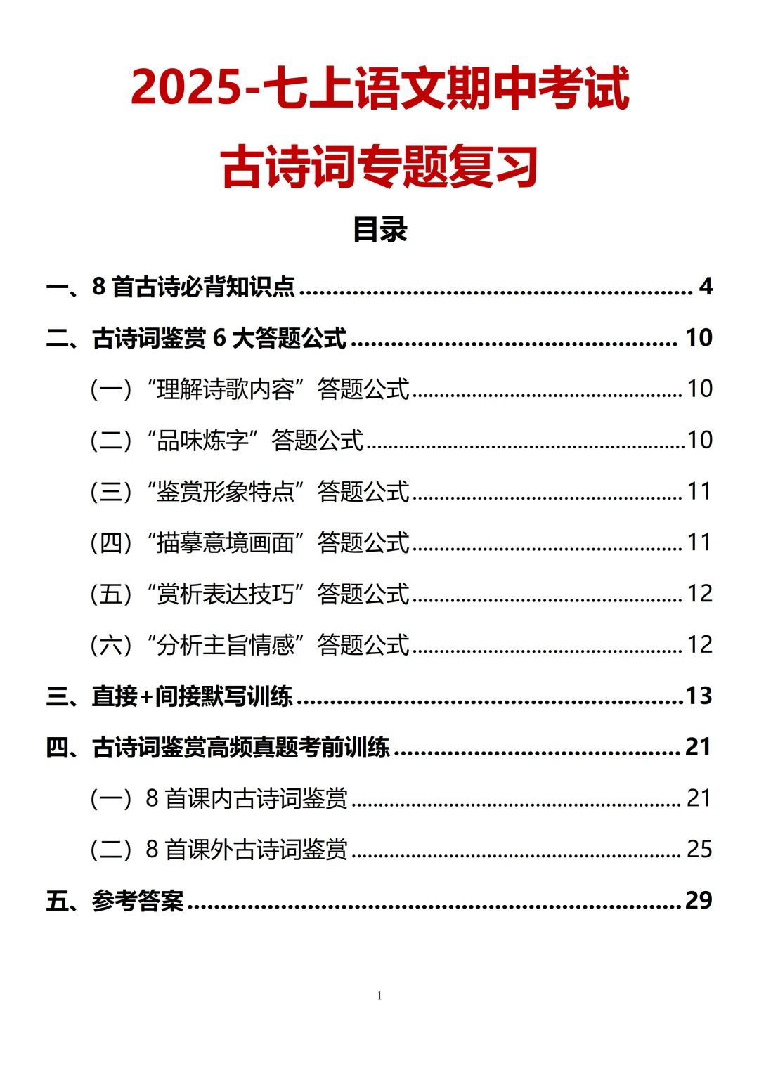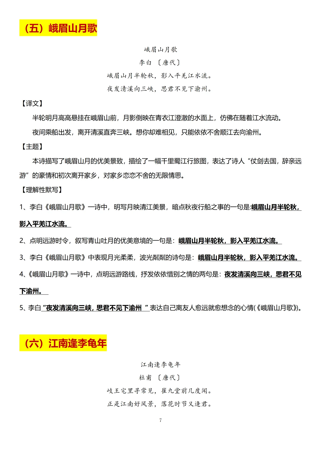 📚 我还整理了七上期中考试必考的8篇古诗词的直接性默写和理解性默写,帮助大家拿下古诗词默写板块!