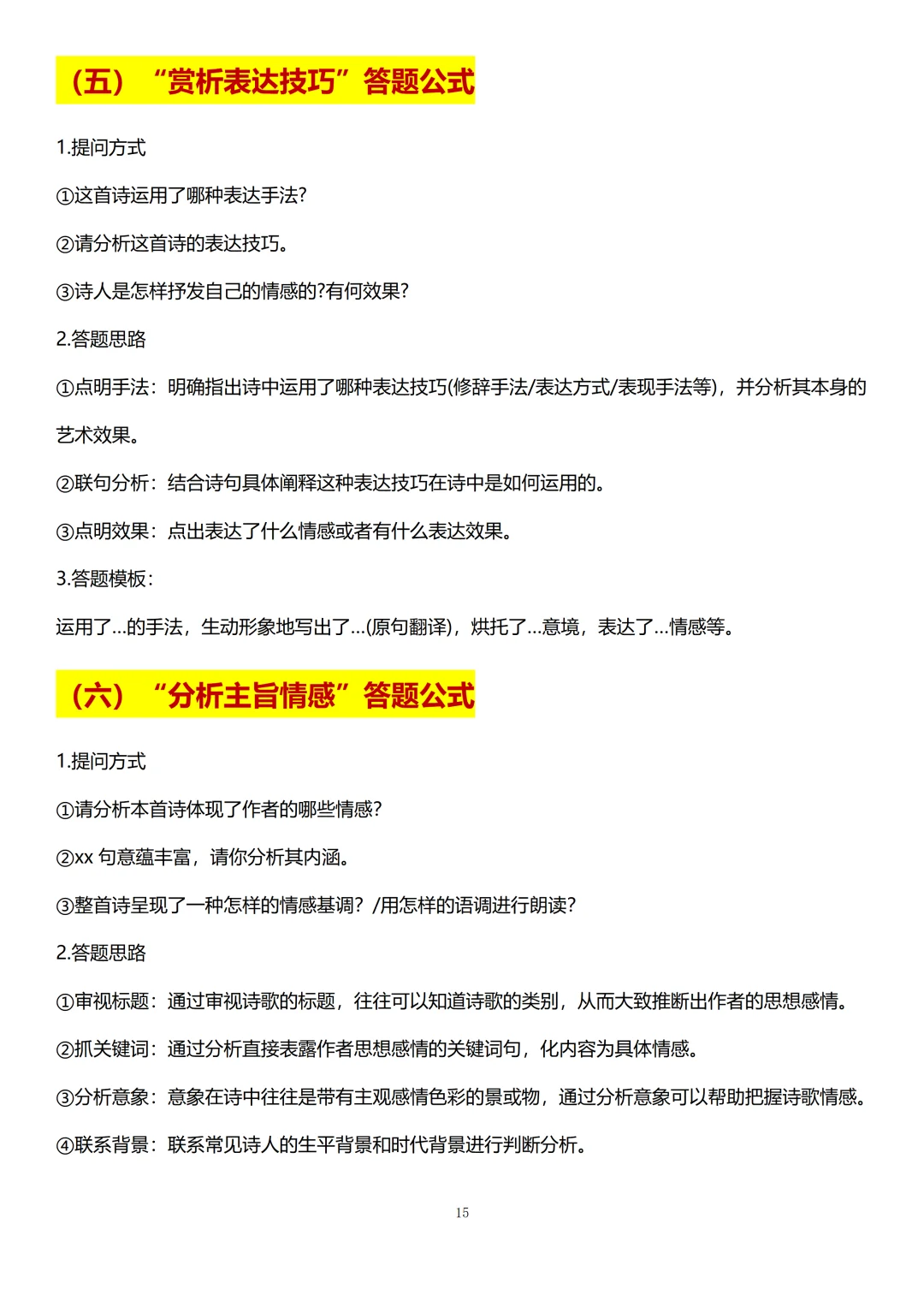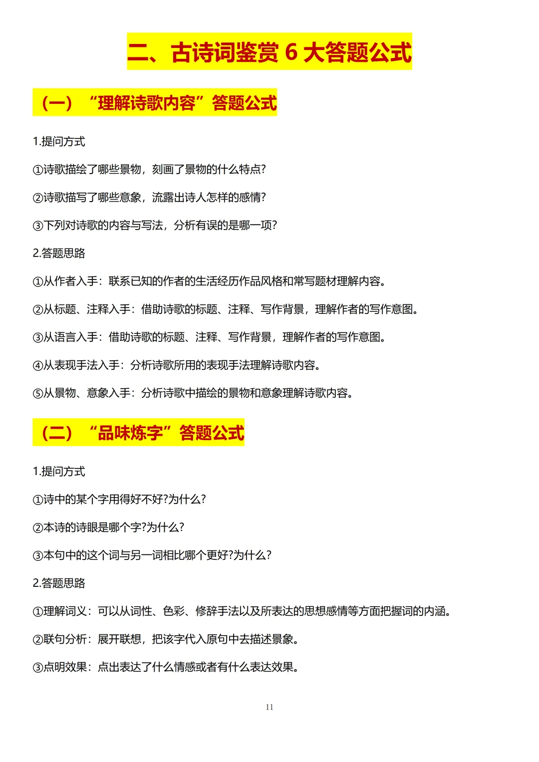 👉 我给大家梳理了古诗词鉴赏的6类常考题型的答题公式