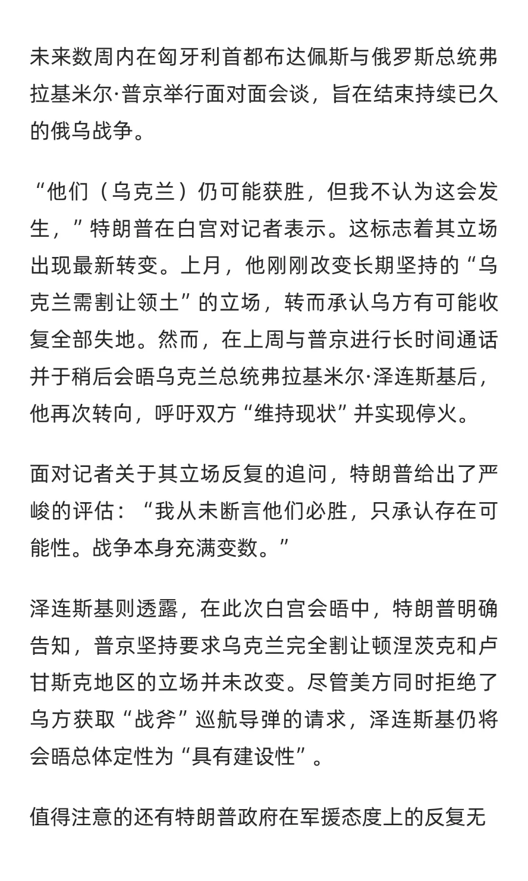 特朗普:乌克兰赢不了