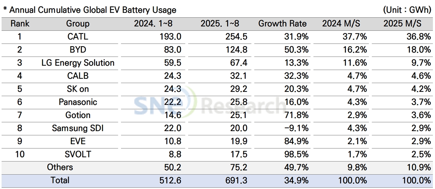 这使得中国动力电池产业贡献了全球过半的动力电池装机量。据SNE数据,今年1-8月全球动力电池装机量前10的企业中,有6家为中国企业,依次为宁德时代、比亚迪(弗迪电池)、中创新航、国轩高科、亿纬锂能以及蜂巢能源。