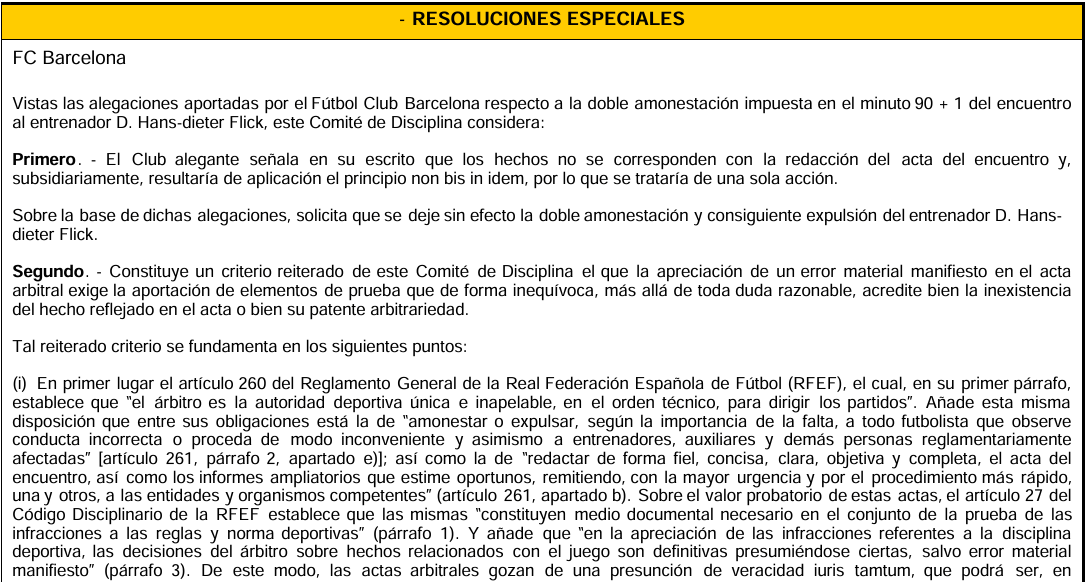 而委员会驳回上诉的核心原因在于,巴萨未能提供无可辩驳的证据来证明裁判报告中存在“明显的实质性错误”。纪律委员会强调,裁判报告在体育纪律仲裁中具有近乎绝对的权威性和真实性推定,只有在极其特殊的情况下才能被推翻。