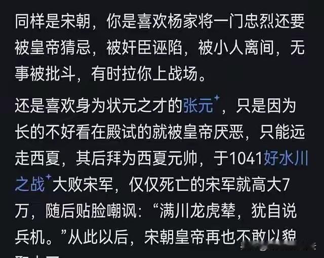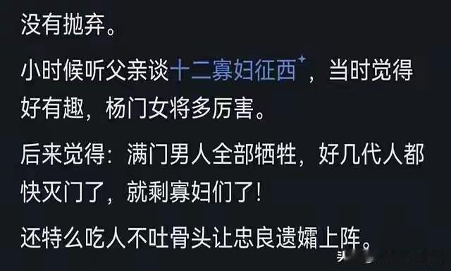 小时候听收音机,特迷恋刘兰芳的评书《杨家将》,为了每天听那半小时,不惜放学路上狂奔,上学却迟到。有一次迟到,老师责问,“你不知道上学紧急吗?”回答,“可那边的事情更紧急,因为杨六郎被困天门阵了。” 可随着信息渠道的拓宽,感觉就像周扒皮的半夜鸡叫一样纯属忽悠人。如果真的是演艺那样的大宋还是趁早完犊子吧,简直是人神共愤的体制。