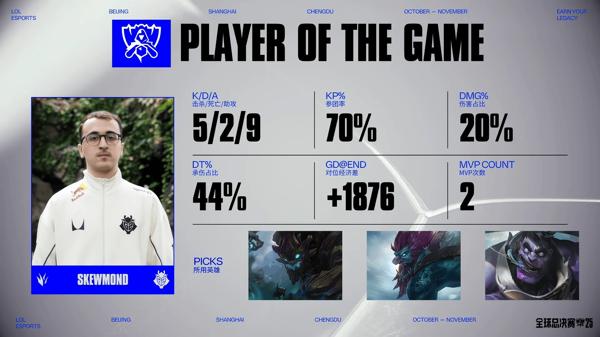 SkewMond蒙多砍下5/2/9的战绩,拿下G2对阵FLY第三局MVP