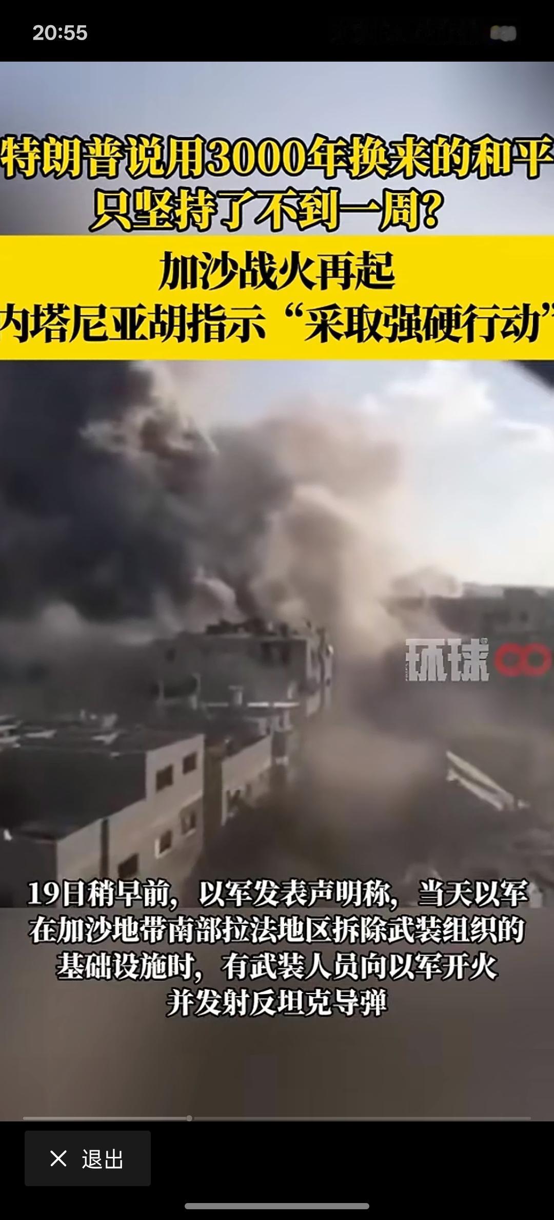 这以色列与巴勒斯坦刚谈判时候挺好的,还不到一周,双方又打起来了