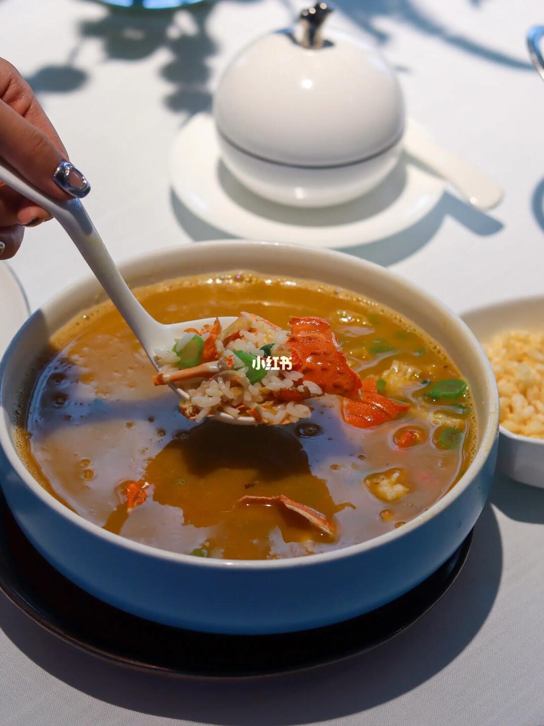 龙虾头尾做成的汤泡饭,很鲜美~米粒都吸满了汤汁,连炫两碗!!