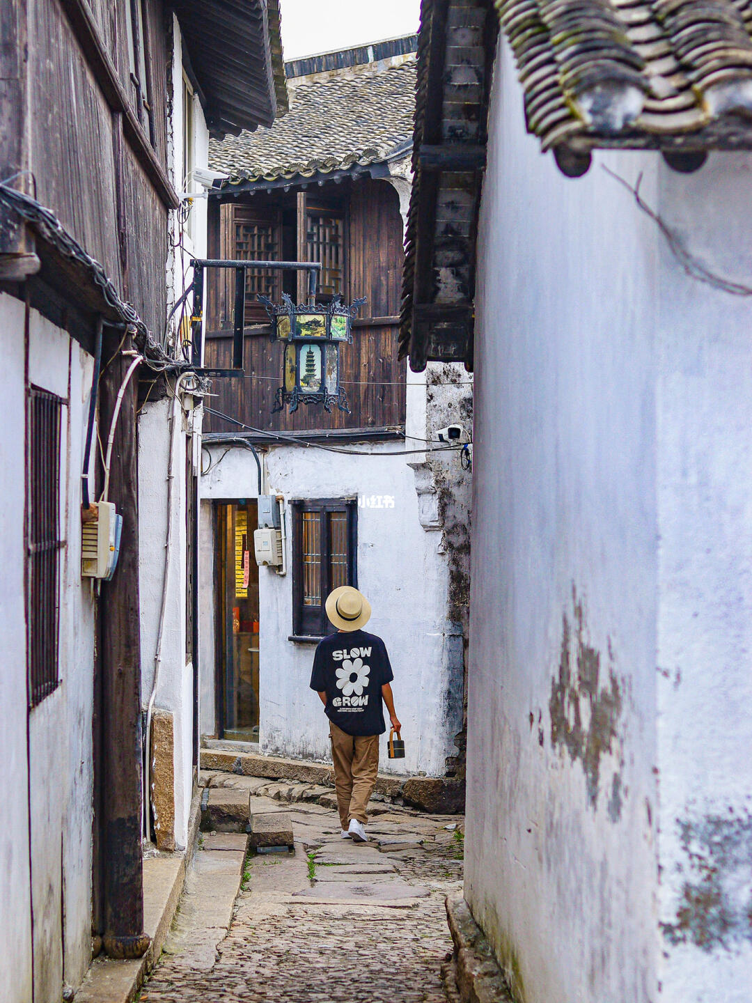 行于白墙灰瓦民居间的青石砖路上