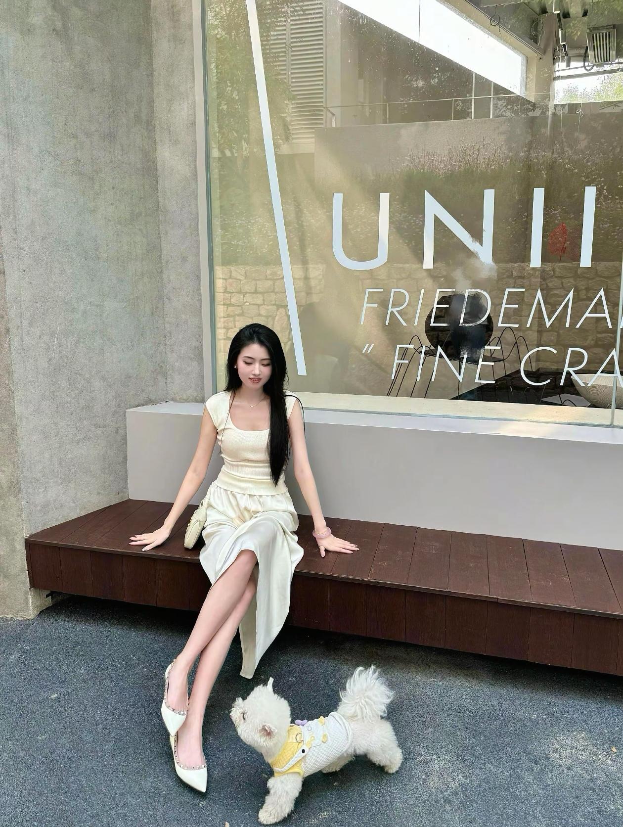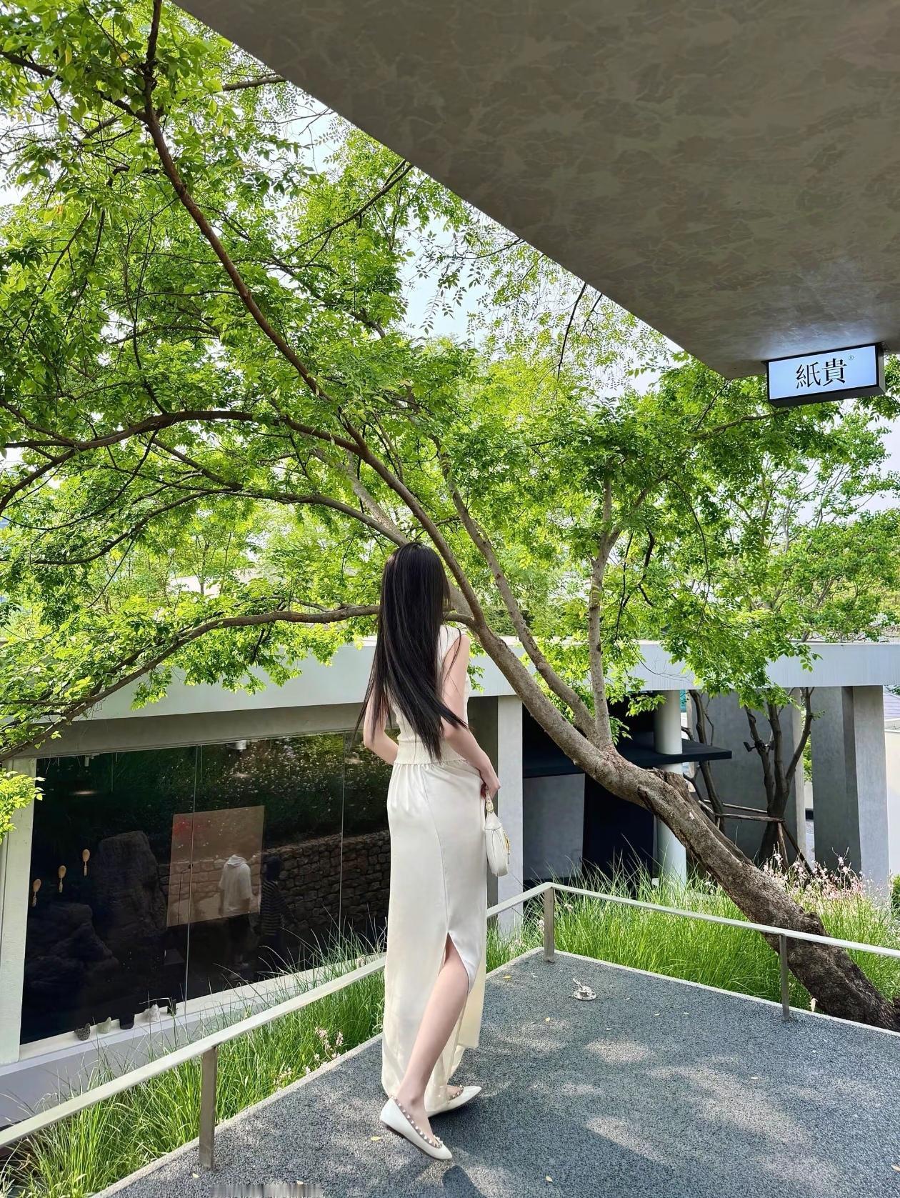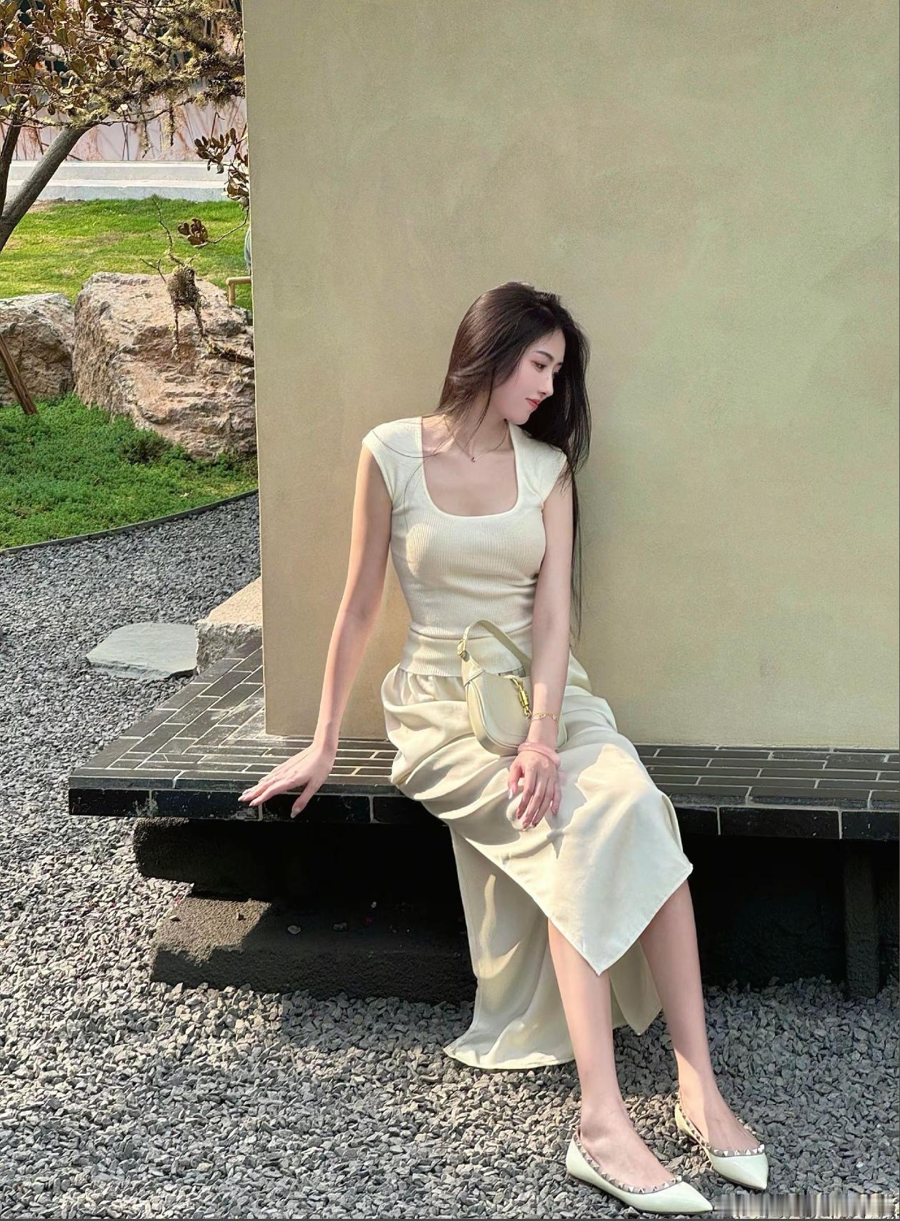 这位穿白色连衣裙的姑娘,搭配简单,看着很清爽。这样的穿搭更显青春靓丽。