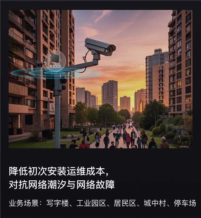 在固定场景中,如写字楼、工业园区、居民区、城中村和停车场,R300S可自动检测最优网络并智能选路,显著降低初次安装与后期运维成本。面对网络潮汐、高峰拥塞或信号盲区,设备能够在不同运营商之间自动切换,避免断连和数据中断。
