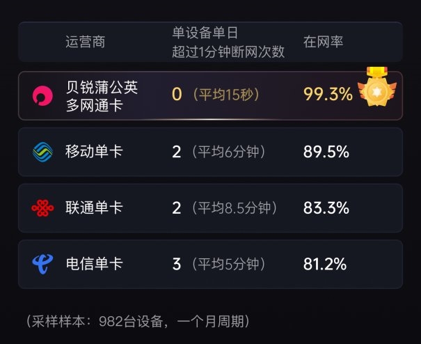 R300S内置的企业物联网卡采用贝锐蒲公英自研的“三网通”方案,只需一张卡即可支持移动、电信、联通三大网络。