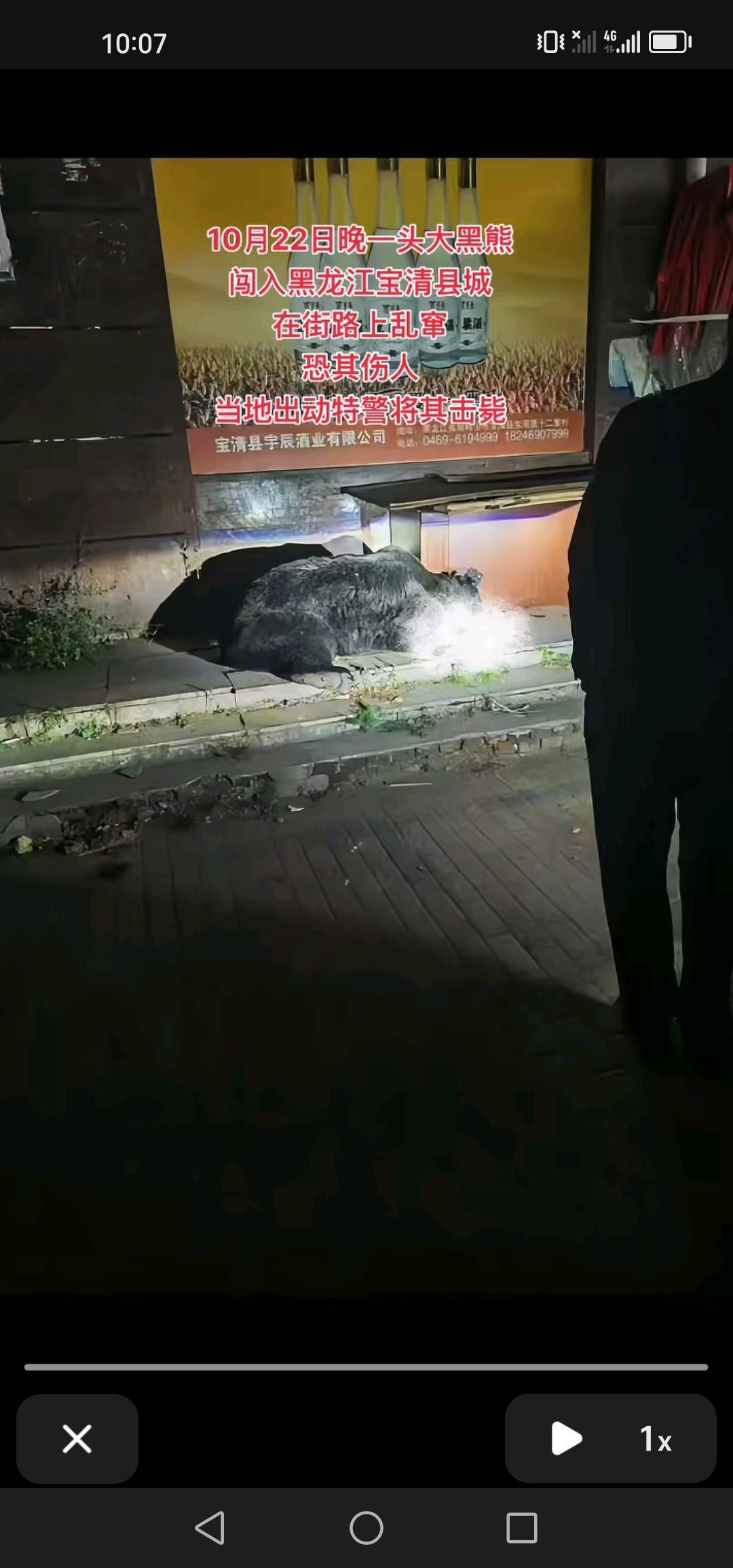 10月22日晚,一头大黑熊闯入黑龙江宝清县城。为保障人民群众安全,特警出动并将其击毙。 据网络消息,10月22日晚,黑龙江宝清县街头出现一头大黑熊,它四处乱转。好在夜间街头行人较少,但仍存在较大安全隐患。有路人发现后迅速报警。现场人员将大黑熊团团围住,使其陷入惊恐状态。为确保人民群众生命安全,特警果断将其击毙。 近年来,随着生态环境持续改善,野生动物数量日益增多,在野外邂逅动物的概率也显著提升。山野间,成群的野鸡、野猪随处可见;珍贵的东北虎、东北豹,现身频率也越来越高。这一切得益于多年来卓有成效的生态保护工作。 然而,矛盾也随之而来。人与动物之间的领地之争时有发生,城区中野猪、熊等野生动物出没的情况屡见不鲜,给人类安全带来了潜在威胁。这是一个亟待解决的问题,尤其是食肉动物,对人类的伤害不容小觑。 民间有“一猪二熊三老虎”的说法,这并非是动物实力的排名,而是它们对人类伤害程度的排序。野生大黑熊对人类具有较大威胁,为保障人民生命财产安全,击毙实属无奈之举。因此,在户外活动时,务必结伴而行,以确保自身安全。 大家对这件事有何看法?欢迎在评论区留言讨论。 图片来源于网络,如有侵权请告知删除。