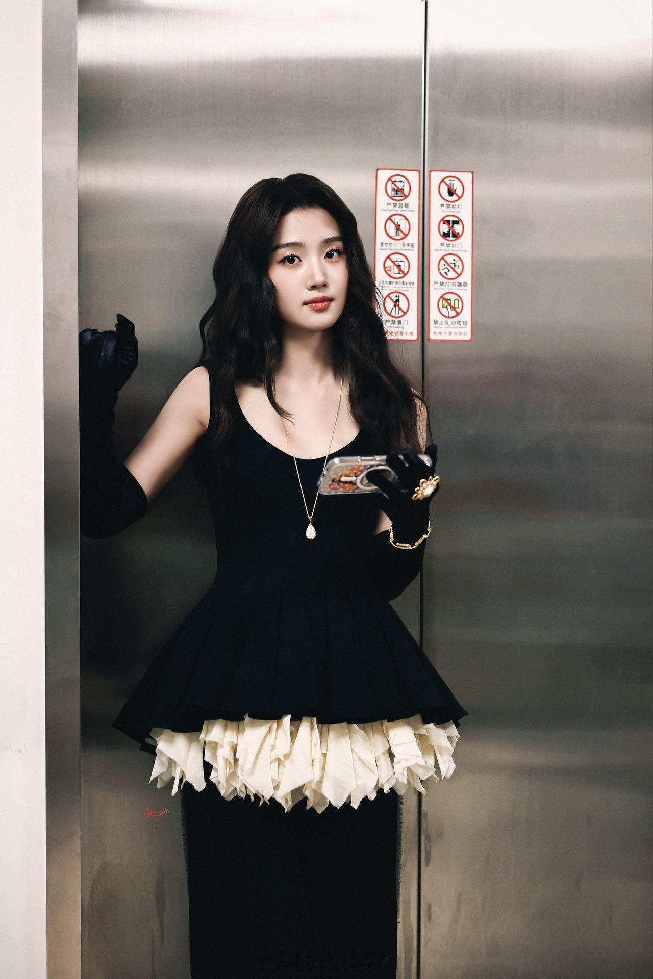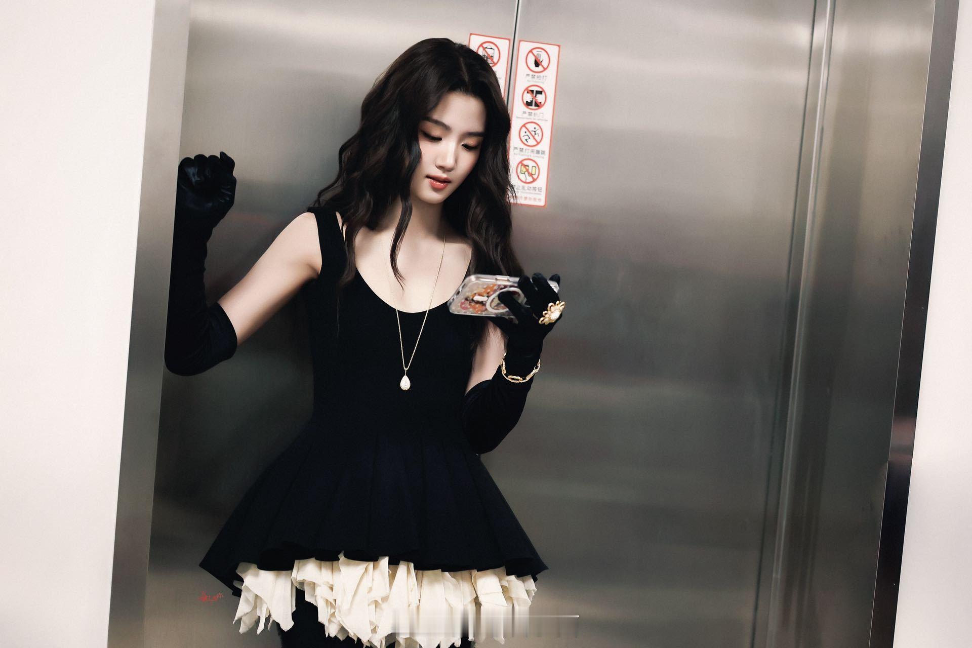 卢昱晓的新鲜路透好漂亮,黑丝绒长裙搭配手套,配上温柔卷发完全是公主来的~