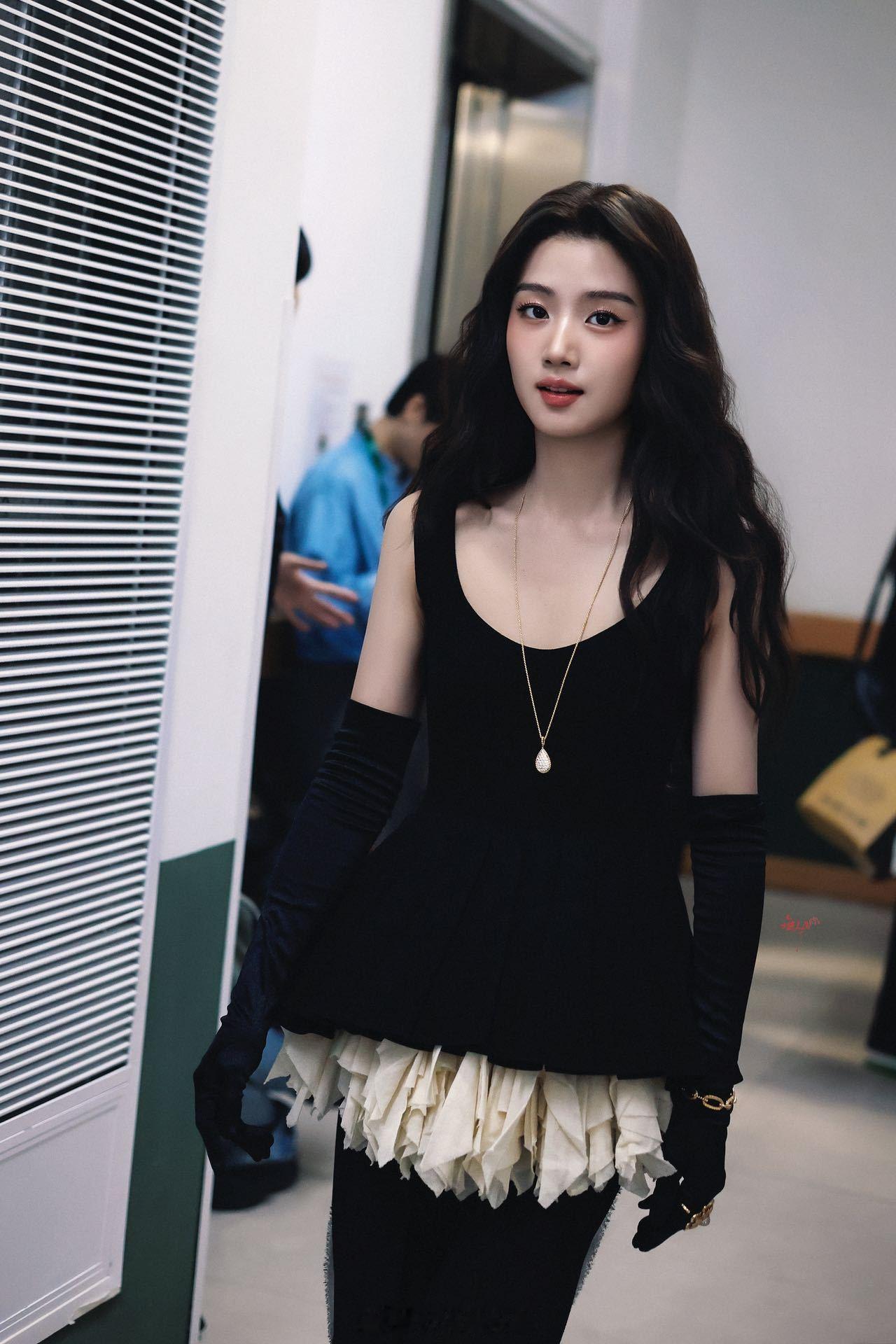 黑金配色搭配一袭温柔感长发,复古感的赫本风好合适妹妹。卢昱晓今天的状态看起来好好,已经开始期待优雅黑天鹅噜闪亮登场了✨
