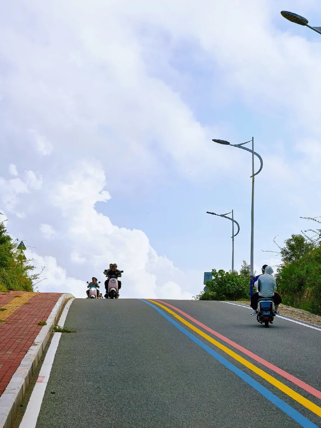 2️⃣租电动车:一天大概60 - 80元,能随时停靠拍照,沿海骑行也超有感觉。但要注意佩戴好头盔,遵守交通规则 。