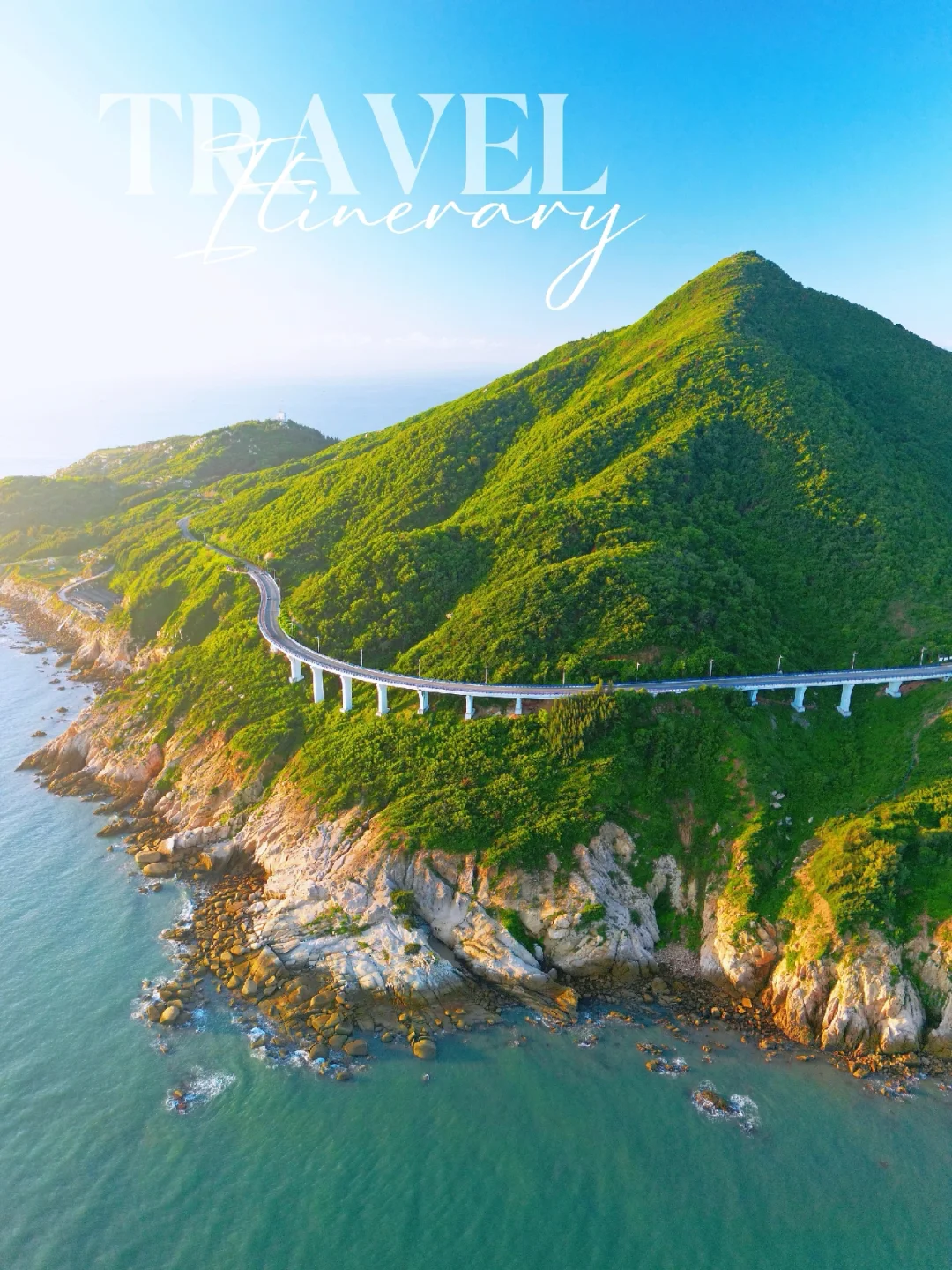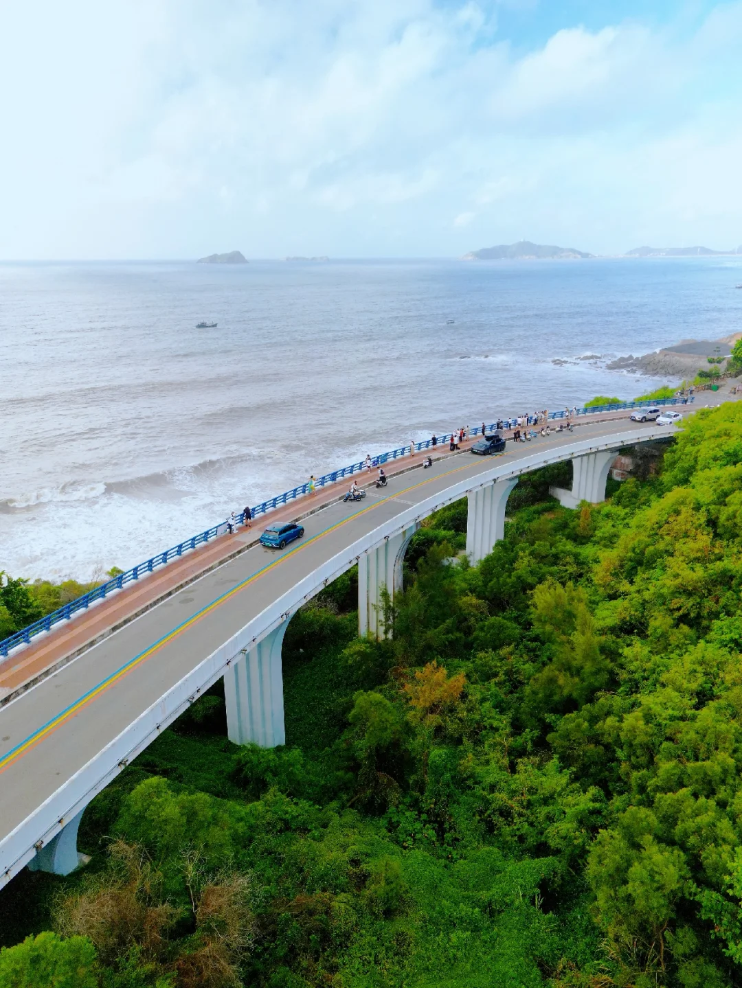 1️⃣蓝色大桥:苏峰山标志性打卡点,蓝色栏杆与湛蓝大海相映成趣,充满文艺气息。