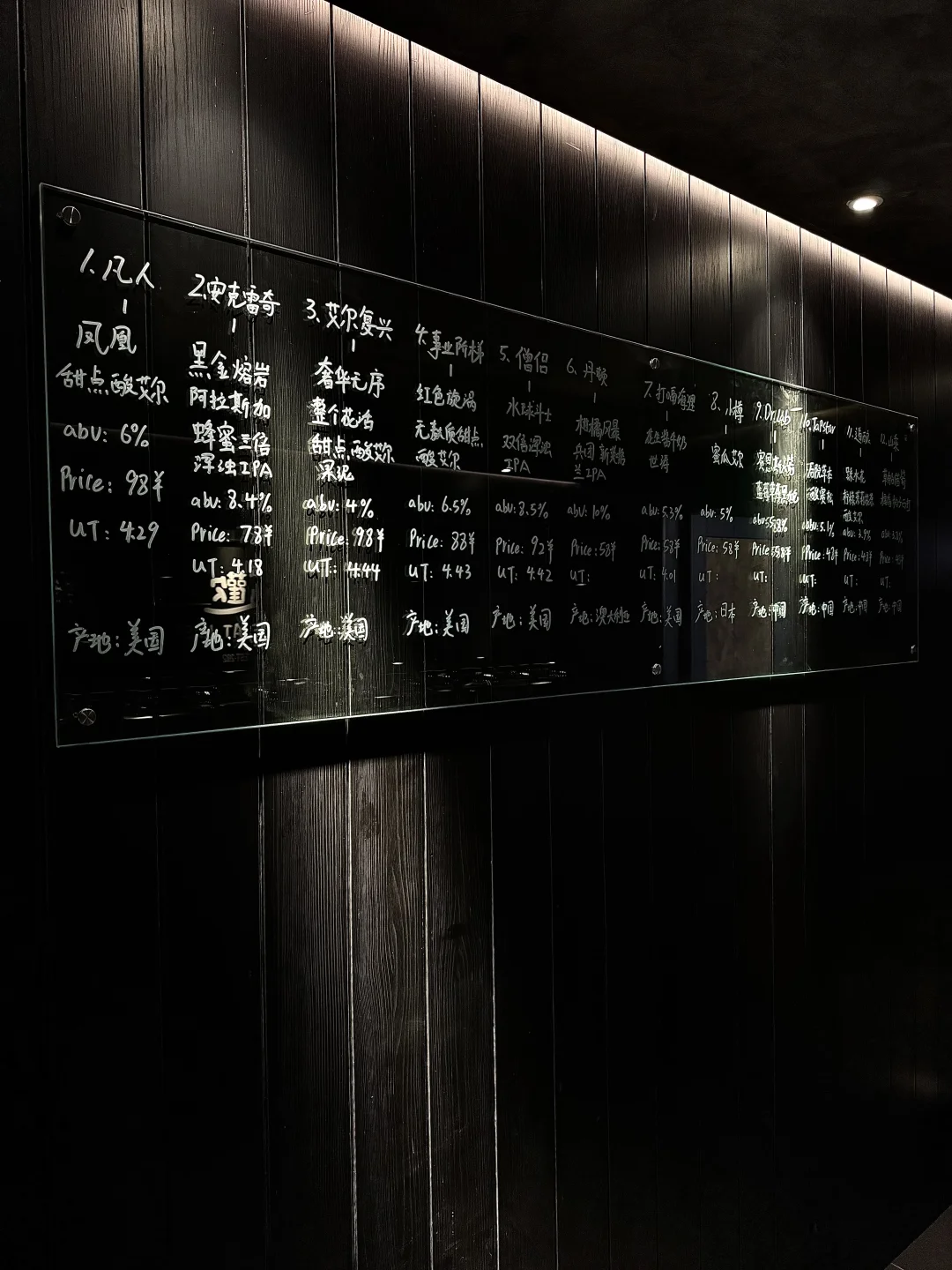 路过无意间看到这家酒吧 门头相当酒香不怕巷子深 差点就错过了 店不大 但很精致 暗调灯光 播放着投影 是我喜欢的纯黑调调 拍照好看 精酿选择很丰富 帅哥老板会根据你的口味推荐 点了几杯 都很不错~ 酒鬼们 精酿脑袋赶紧冲🍻
