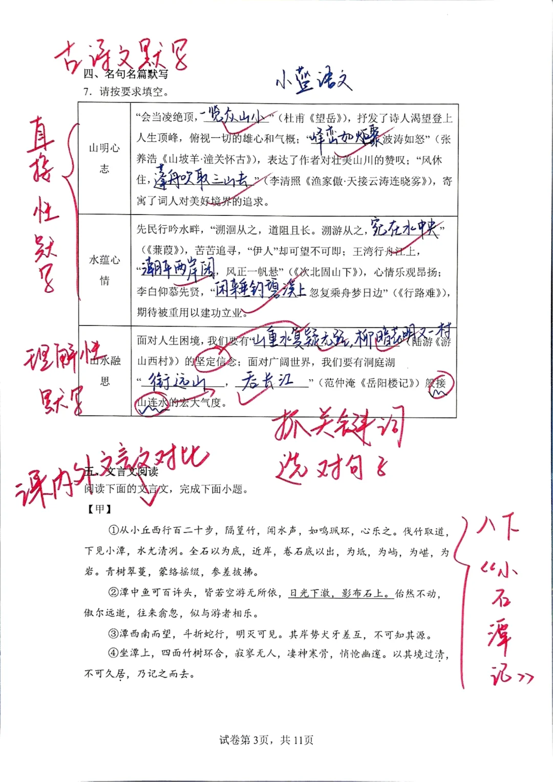 [四R]古诗文默写考直接性默写和理解性默写,考前把所有必考古诗文默写一遍,要背诵课内古诗词的【翻译】【意象】【手法】【体裁知识】【主旨情感】,做题时才能迅速从题干摘取关键词,保证古诗默写不丢分。