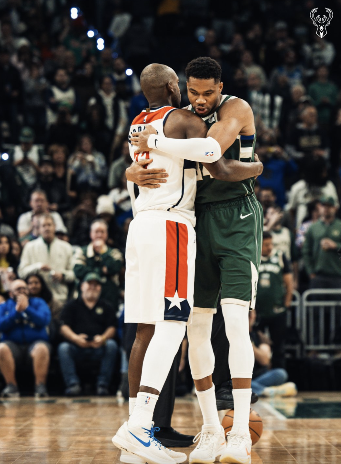 赛后雄鹿官媒更新了X,晒出了扬尼斯-阿德托昆博与克里斯-米德尔顿赛后拥抱照。