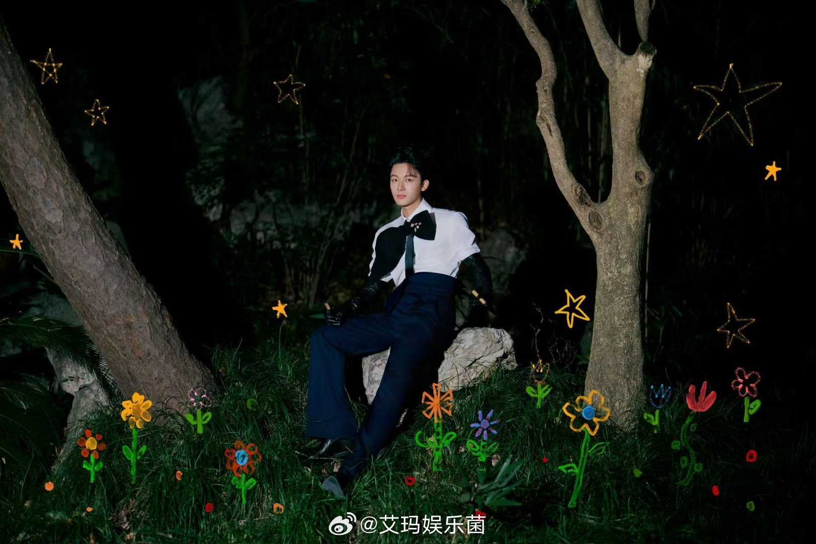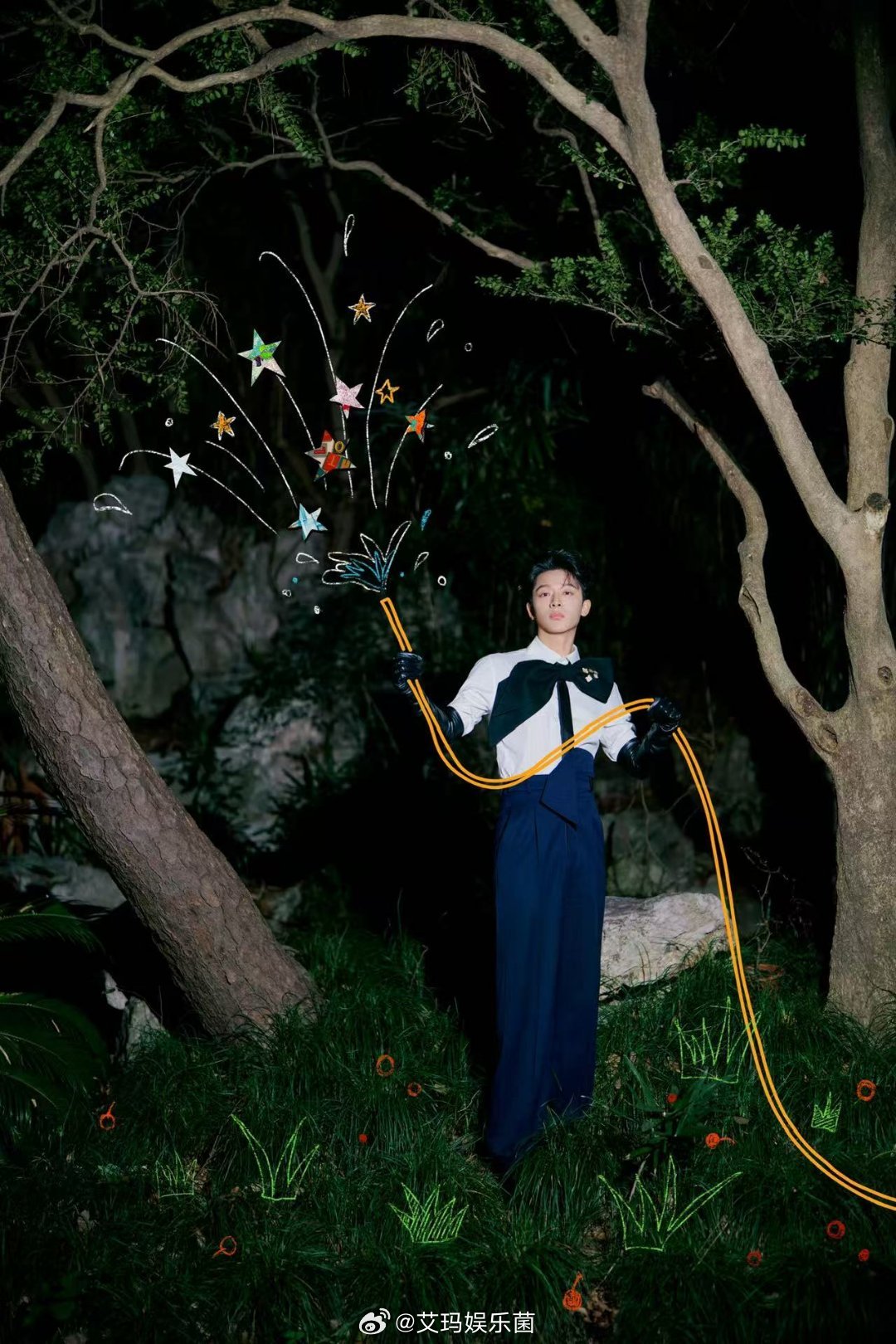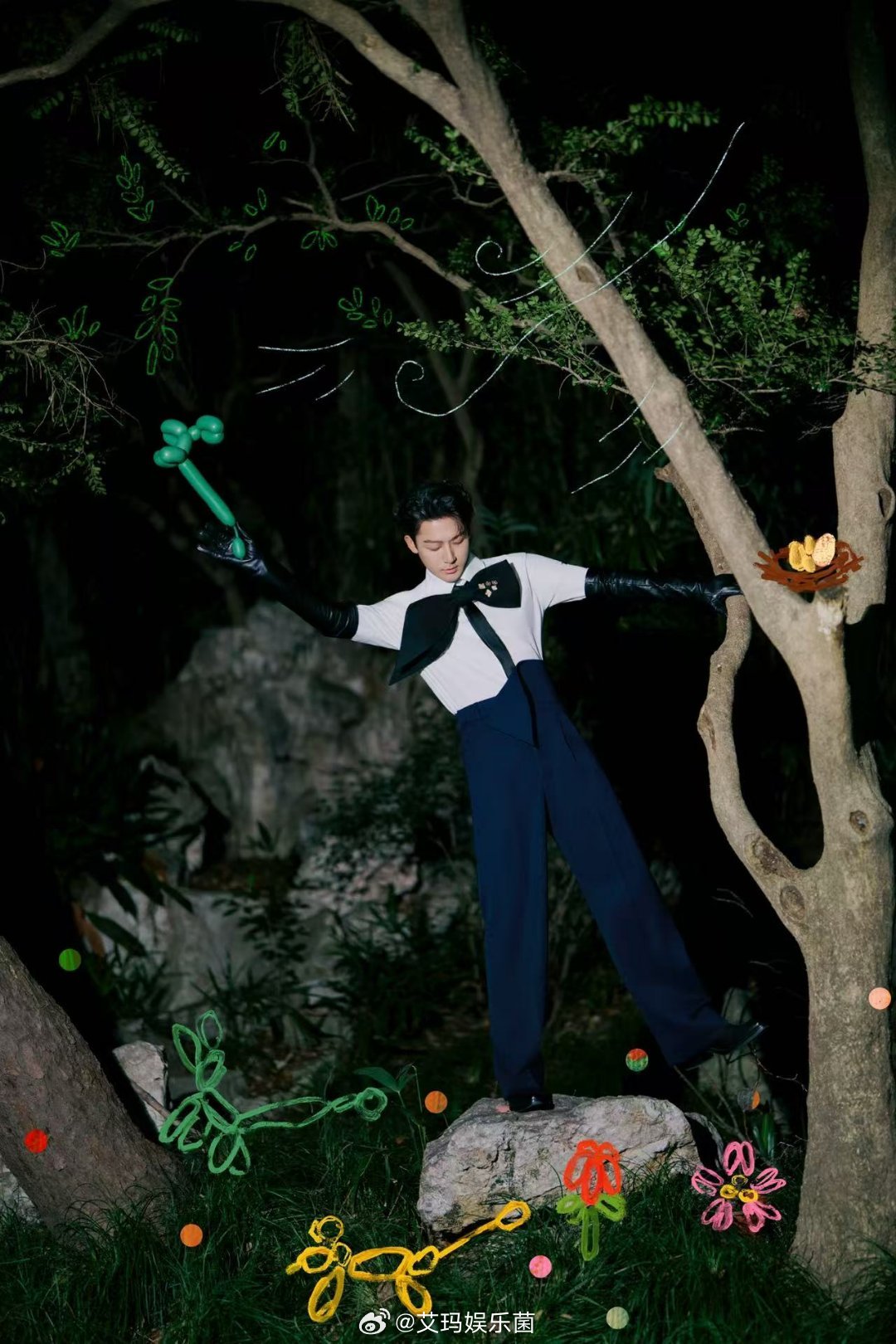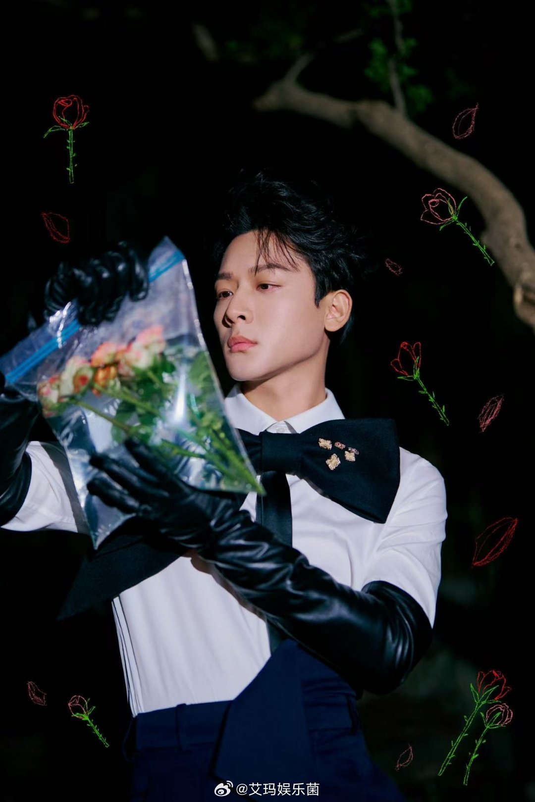张晚意超大号领结原来男生带蝴蝶结也可以很个性,张晚意超大号领结一戴,衬的他脸巴掌
