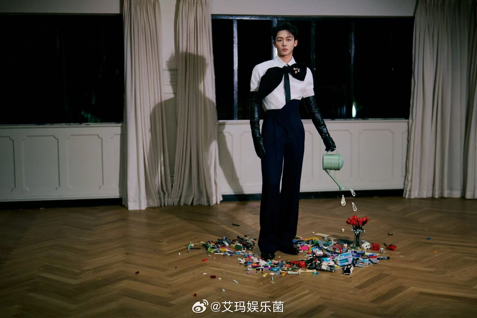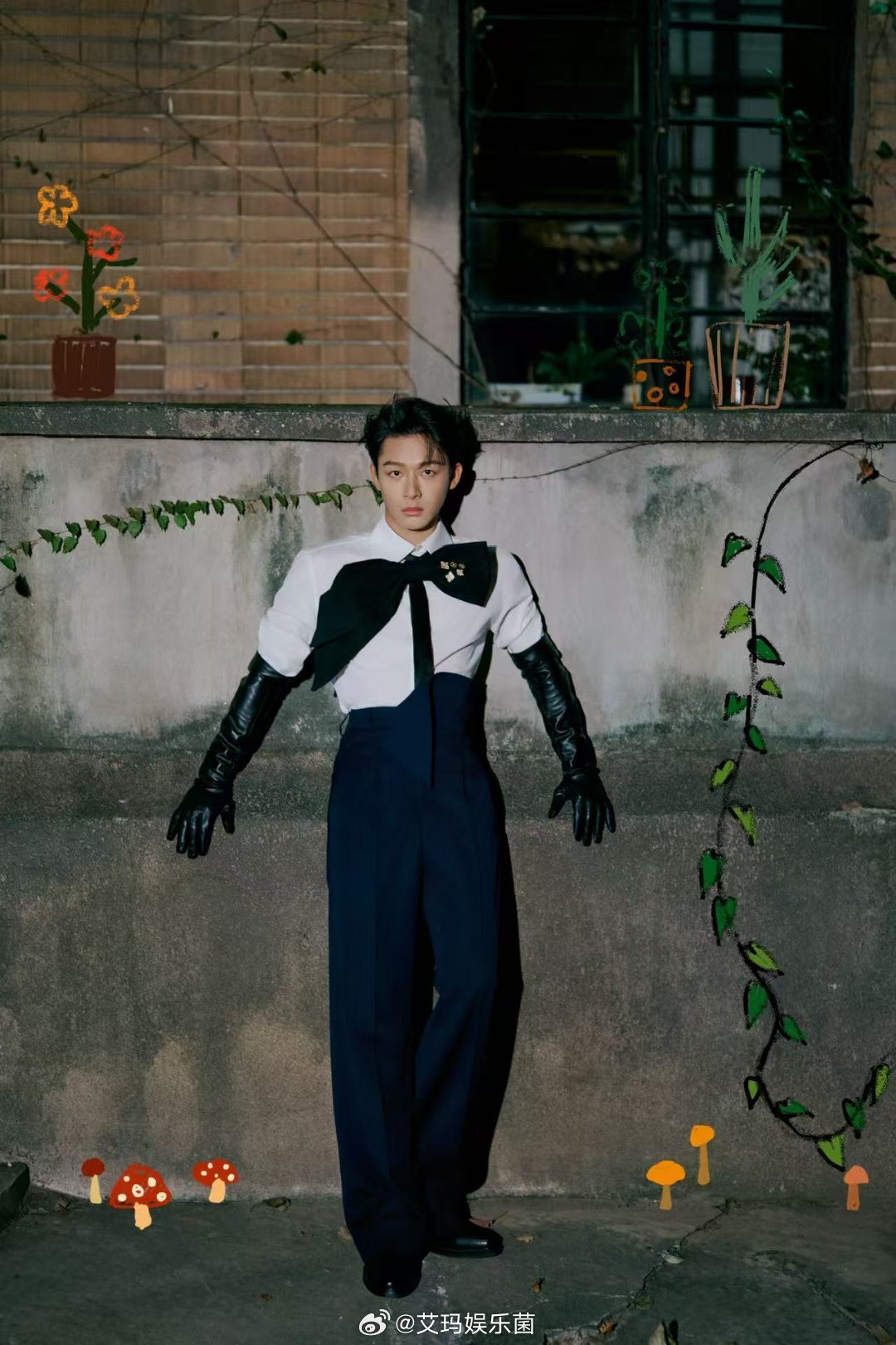原来男生带蝴蝶结也可以很个性,张晚意超大号领结一戴,衬的他脸巴掌大谁懂啊,调整视觉比例的同时又给沉闷的黑白色系增加了一些俏皮感!