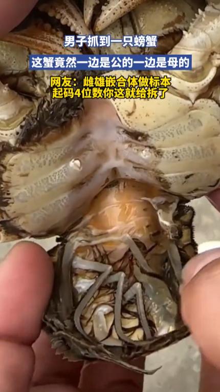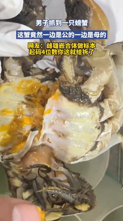 “亏大发了!”10月20日,江苏,一男子在河里抓到一只螃蟹,结果发现这只螃蟹竟然是“阴阳蟹”,它的身体一半是公蟹,一半是母蟹,男子直呼这辈子从来都没见过,网友看到后更是恨铁不成钢:做成标本最少4位数!结果你给拆了。[浮云] 10月20号那天,江苏有个大哥跟平时一样,去河边抓了几只螃蟹。本来想着晚上蒸了,就着小酒当盘下酒菜,没成想,这其中一只螃蟹,愣是闹出了不小的动静。 大哥把螃蟹拎回家,收拾的时候才发现不对劲。别的螃蟹不是公就是母,一眼就能看明白,可这只不一样。他拿着螃蟹翻来覆去瞅,越瞅越觉得稀罕——螃蟹的肚子,一半是公蟹特有的尖三角,另一半却是母蟹那种圆鼓鼓的模样,就连两边的蟹爪,大小都不太对称。 活了几十年,大哥还是头一回见这样的螃蟹,嘴里直嘀咕:“这玩意儿是啥情况?咋一半公一半母啊?” 他当时也没多想,就觉得是个稀罕玩意儿。 再仔细一看,这螃蟹好像已经没气儿了,大哥本着“不能浪费粮食”的心思,心里琢磨:既然都死了,扔了多可惜,不如拆开看看里头到底啥样。这一拆可了不得了,里头好像既有公蟹绵密的蟹膏,又有母蟹油润的蟹黄,大哥更觉得新鲜了,干脆就把它跟其他螃蟹一起下锅煮了。 吃完这顿螃蟹,大哥还觉得这事儿特有意思,算是饭桌上一桩能吹牛的奇遇。他翻出之前拍的螃蟹照片,发在了网上,配文说“活久见,第一次见这种一半公一半母的螃蟹,味道还不错”,自己都还在感叹这事儿太稀奇。 没成想,帖子一发出,评论区直接就炸了。网友们看到照片,先是被这螃蟹的模样惊到了,纷纷留言“我的天,这就是传说中的‘阴阳蟹’吧?”“长这么大,我还是第一次见这种螃蟹,太特别了!”可紧接着,就有一大波网友急得跳脚,直呼“亏大发了啊兄弟!” 有懂行的网友说,这种“阴阳蟹”是嵌合体,全球都特别罕见。之前美国在2005年和2021年也发现过类似的,但那是蓝蟹,跟咱们这的螃蟹不是一个品种,所以大哥抓到的这只,稀罕得很。还有人恨铁不成钢地说:“大哥你可真是个实在人!这螃蟹要是送到博物馆做成标本,最少也得值四位数啊!你倒好,直接给拆了煮了,这可是实打实的损失啊!” 评论区里,惋惜的声音一波接一波。有人说:“我的心都在滴血,这么稀有的东西,就这么成了下酒菜,也太暴殄天物了!”还有人开玩笑:“大哥,你知道你吃下去的是多少钱吗?这一顿螃蟹,吃没了好几顿螃蟹宴的钱啊!” 不过,网上的声音从来都不是一边倒的。这边惋惜声还没停,另一边就有网友开始羡慕了。有人说:“羡慕哭了!能同时吃到蟹膏和蟹黄,这口福可不是花钱能买着的!”还有人觉得大哥做得没毛病:“本来就是只螃蟹,死了不煮了吃还能咋办?总不能放着臭了吧?” 甚至有网友帮大哥说话:“标本再好也是个死物,放展柜里落灰,哪有进肚子里实在。对于咱们普通人来说,能尝到这稀罕味道,比啥都强,这才是这只螃蟹‘蟹生’的终极价值啊!” 就这么着,那只被煮了的螃蟹,虽然早就变成了大哥肚子里的美味,可网上的讨论却一直没停过。 有人觉得大哥太可惜,错失了一个能换四位数的机会;有人觉得大哥活得通透,不浪费食材才是正经事。 其实说白了,大家吵的不是螃蟹本身,是对“稀有”这俩字的看法不一样。 有人觉得稀有就该好好保存,做成标本留着让更多人看,这才是它的价值;有人觉得稀有不如当下享受,能吃到嘴里、不浪费,才不算白瞎了这稀罕玩意儿。 这只普普通通的江苏螃蟹,本来该安安静静当盘下酒菜,没成想因为自己“一半公一半母”的模样,从餐桌火到了网上。 信息来源:《男子抓到一只螃蟹,这蟹竟然一边是公的一边是母的》云观视角