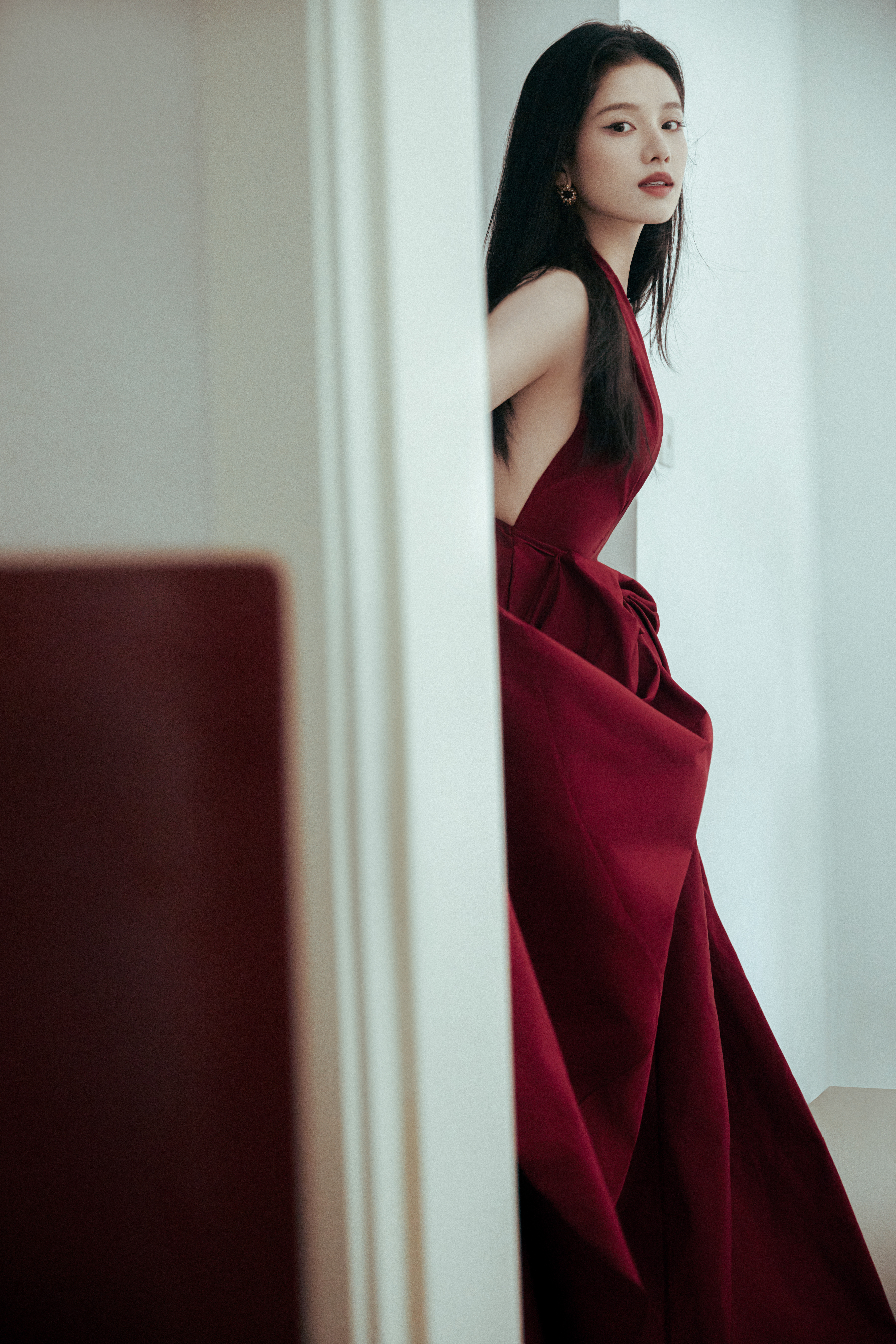 张婧仪 酒红曳地成诗,立于极简天地间,以一身炽烈,将高级感晕染成独属的勋章。张