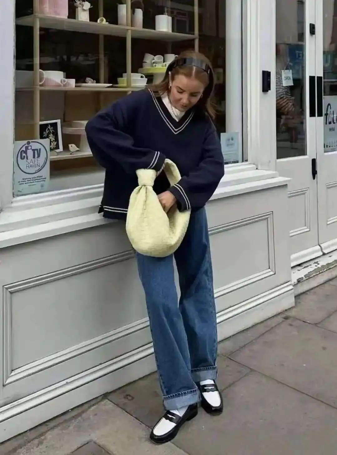 牛仔裤搭配毛衣,能够增添一丝温柔感,非常适合休闲和通勤场合。而且,毛衣的颜色和款式也非常多样,可以选择经典的针织毛衣,也可以选择时尚的开衫毛衣,搭配牛仔裤和乐福鞋,既舒适又时尚。