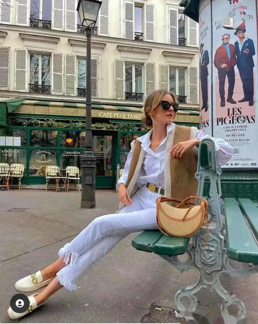 牛仔裤与乐福鞋的搭配,永远都不会过时,它们所散发出的复古与优雅气质,能够给人一种清新舒适的感觉,非常适合春季的穿搭。