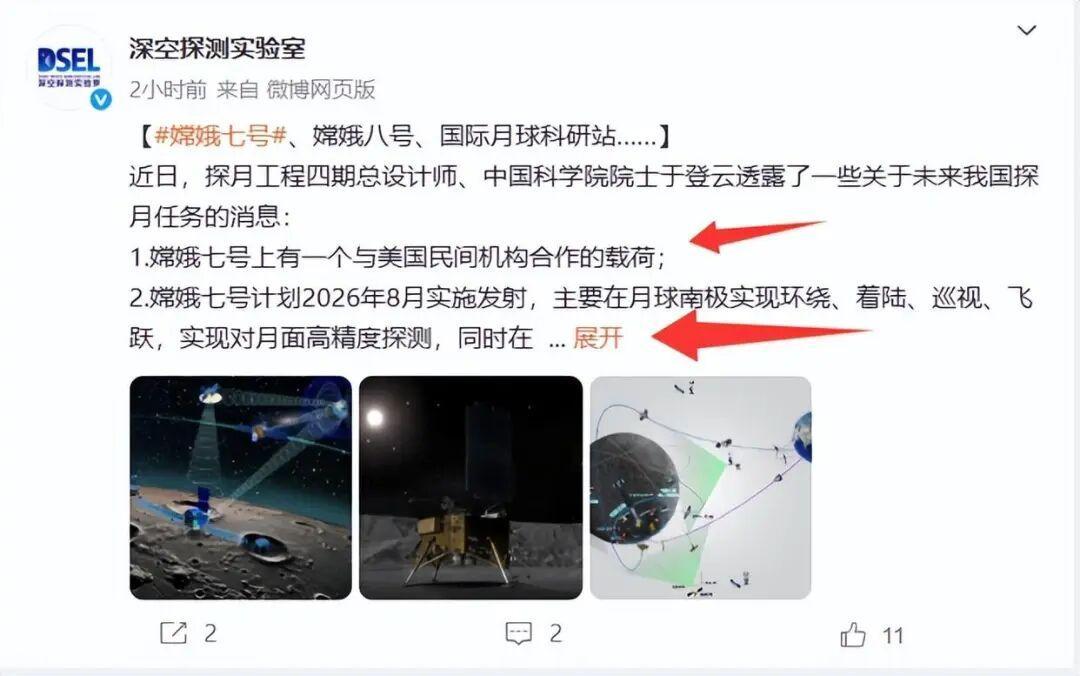 10月24日,据央视新闻直播间报道,近日,国家载人航天办公室透露,嫦娥七号发射时间为2026年嫦娥五号 8月份。 此次嫦娥七号有两大重要任务,一个是在月球上找水资源,二是为2030年中国🇨🇳航天员登月及2035年前建立起自己的月球工作站选址打下基础。 嫦娥七号并搭载7个国家载荷,一,埃及与巴林合作研制一台载荷,瑞士研制月基双通道地球辅射能谱仪,泰国研制空间大气全球监测传感装置,俄罗斯研制月球尘埃与电场探测仪,意大利研制激光角反应器,国际月球天文台协会研制的月基天文观测望远镜,开展月球银河系、地球全景天空观测。 评论,嫦娥七号任务艰巨啊!为中国🇨🇳2030年航天员登月和在月球上建立起自己的月球基地铺平道路。[赞][赞][赞][赞][赞][赞]