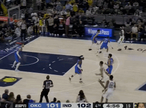马瑟林硬解三分+沃克中距离,直接打停雷霆! 北京时间10月24日,步行者与雷霆的比赛来到决胜5分钟,马瑟林硬解三分+沃克中距离,帮助球队104-101反超,直接打停雷霆。 图一:雷霆的防守已经将步行者进攻摁到接近24秒违例,马瑟林迎着多尔特的防守拔进压哨三分。 图二:随后的守转攻,沃克强吃维金斯的干拔中距离,帮助步行者104-101建立3分优势,直接打停戴格诺特。