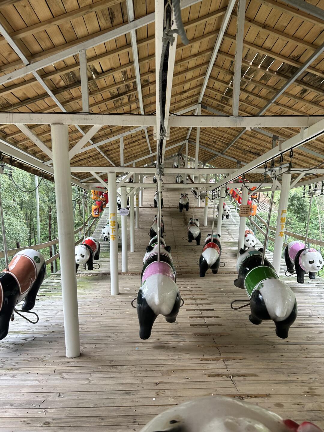 浙江 你真的不要太卷了! 游乐园都开到山顶来了 看竹海山景的同时还能玩好玩到爆的项目 坐熊猫上山 开QQ飞车下山 一步路都不用爬... 懒人上山的方式也是被安排得明明白白 各种萌宠、竹林漂流、高空蹦迪 真的哪个年龄段都不准备放过啊 . 🎢:云上草原度假区熊猫部落探险乐园 ⌚️:9:00-17:00 🚗:杭州出发自驾1h 也可高铁到安吉站后换乘公交直达 . 🐼熊猫部落游玩路线:熊猫上山➞熊猫大蹦床➞威亚飞人➞竹间漂流➞天路飞车➞竹林咖啡➞萌宠乐园 . 📷必玩项目: 熊猫上山:超可爱的熊猫排排坐上山顶,不用徒步爬山,江浙沪有自己的懒人上山方式 - 天路飞车:现实版的QQ飞车,从山顶开下1314米长的赛道,各种弯道,超酷好玩程度爆表 - 竹间漂流:玩水党福音,竹林间的高空滑道漂流过山车,惊险又刺激 - 萌宠乐园:卡皮巴拉、羊驼、小羊、柯尔鸭、小浣熊、小鹿,都超可爱超好rua,还能亲自喂食~ - 🏨住宿 整个云上草原度假区非常大,真心建议在山上住上两天。盲选了半山隐竹酒店,位于悬崖之上,群山环绕之中。空气中自带负氧离子,自带的露天阳台正对山景,躺在床上就能看到星空日出。酒店公区也很大,洞穴温汤、半山咖啡馆及松鼠部落也足够好玩。 .