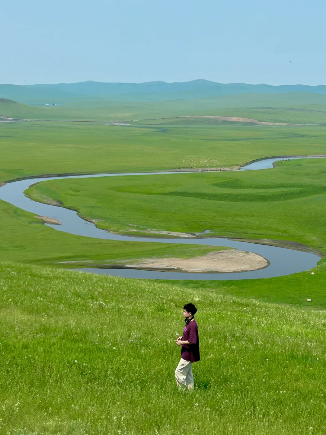 今夏为止 最爱的旅行地出现了 平均20 ° 的气温 蓝天白云 湿地湖泊 无边无际的大草原 自由蹦跑的牛羊马群 滑草 看马术 访牧户 抱小羊 喂麋鹿 风车山 动画片里的场景在这里逐一实现 🍃初夏的呼伦贝尔就是人间理想 . 📋我的5日行程 d1:海拉尔→达尔吉林寺→穿越草原腹地→莫尔格勒河→额尔古纳湿地 d2:额尔古纳→白桦林→恩和→室韦 d3:室韦→边防公路卡线→乌兰山→黑山头→访牧户骑马 d4:黑山头→ 186彩带河→巴尔虎蒙古部落→满洲里套娃广场→国门 d5:满洲里→扎赉诺尔博物馆→呼伦湖→呼和诺尔草原→海拉尔 . ❾条建议让呼伦贝尔旅行更完美 ❶往返海拉最经济实惠,大环线也能在这里形成完美闭环,经典线路大概需要6天 海拉尔→额尔古纳→恩和→室韦→边防公路卡线→黑山头→满洲里→海拉尔 ❷野生景点甚至比景区更具吸引力,但公共交通几乎无法抵达,跟经验丰富的车队才是最优选(六天除吃饭外全含的车队也仅3k+) ❸比景区更美的野景点如额尔古纳断崖(已封)、呼伦贝尔大草原穿越、恩和后山山顶、黑山头日测点西坡、呼伦湖断崖及拴马桩、风之谷大峡谷等等 ❹海拉尔及满洲里周边多为草原,西部多为林区。必打卡的草原木栅栏就在出额尔古纳河不远的草海穿越地带,而风车山离满洲里市区并不远 ❺与牛羊马互动是必不可少项目,牛马随处可见,羊群多在牧户,运气好在路边或湿地也可以碰到牧民放羊。当然黑山头也可以骑马,访牧民喂小羊 ❻ 除了草原,湿地也是呼伦贝尔不难忽视的景观,额尔古纳湿地及四队、黑山头日测点西坡、边境卡线沿岸都有九曲十八弯的河道景观 ❼最美日落观测点推荐,但并不局限于额尔古纳的河边湿地、恩和连绵起伏的抹茶色后山、黑山头湿地西坡、满洲里风车山、呼伦湖拴马桩 ❽出了草原你可能很难再找到越野车穿越草海、白桦林里喂麋鹿🫎、骑马到界河、彩带河滑草、湿地atv、部落马术表演、住蒙古包、坐恩和俄罗斯族的马车等等娱乐项目 ❾草原温差较大,白天做好防晒及驱蚊极为重要。但也不必太过在意恶劣天气,或许会出现彩虹等意外惊喜 .