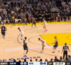戈登三分7中7已经狂轰25分 北京时间10月24日,掘金与勇士的比赛进行至第二节中段,戈登三分线外已经7中7狂轰25分。 图一:比赛一开始,戈登就找到三分手感,轰进第一记三分。 图二:截止至两分钟为止,戈登三分已经7中7狂轰25分,以致杨毅老师直呼,这是克莱啊!