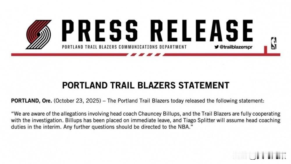 一场风暴,NBA的黑暗时刻 2025年10月23日,是个不寻常的日子,NBA出大事了。特里·罗齐尔,昌西·比卢普斯,都被FBI抓了,非法赌博,联盟都震动了。 昌西·比卢普斯是开拓者的主教练,这下可好,被NBA停职了,特里·罗齐尔在热火队打球,也被要求离队,大家都在想,这到底是怎么一回事。斯普利特,也不知道是谁,临危受命,当了开拓者的临时教练。 周四凌晨,他们两个被抓了,都是因为赌博,23号那天,NBA发了声明,停职,开拓者也说了,斯普利特暂时接手,真是一团乱麻。NBA的意思很明确,要保证公平,全力配合调查,开拓者也一样,配合调查,然后找了个临时工,斯普利特。 这两个人的职业生涯,完了,斯普利特怎么样,不好说,体育赌博,以后肯定管得更严了,很多人看完这个故事,都会去想,这背后还有什么,谁能说得清。