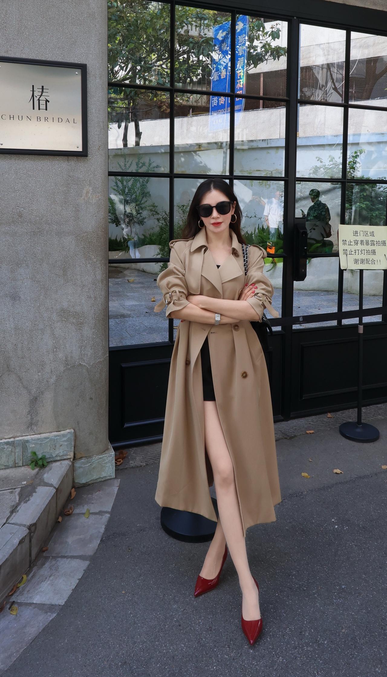随地大小拍 姐能给你的只有感觉!气质风衣穿搭 御姐风细跟高跟鞋太绝了 红色高跟