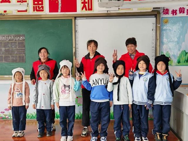 班主任介绍,班级里很多孩子从未收到过纯手工礼物,极具纪念意义。志愿者们蹲下身为孩子们调整帽围,教室里的欢笑声驱散了所有寒意。