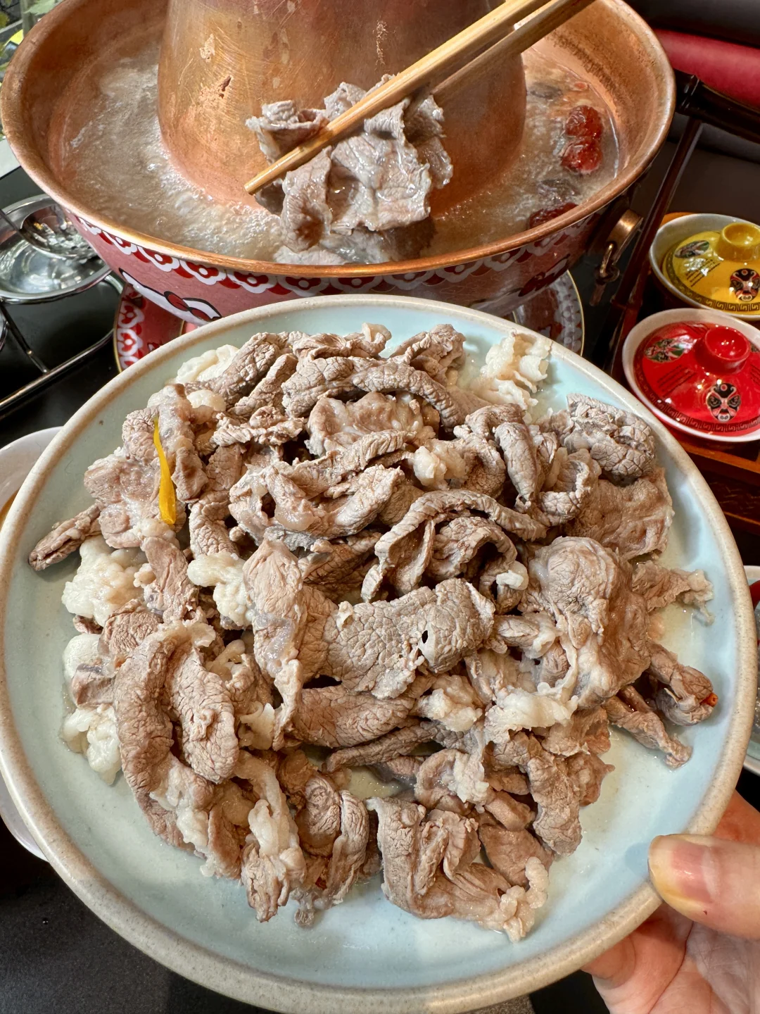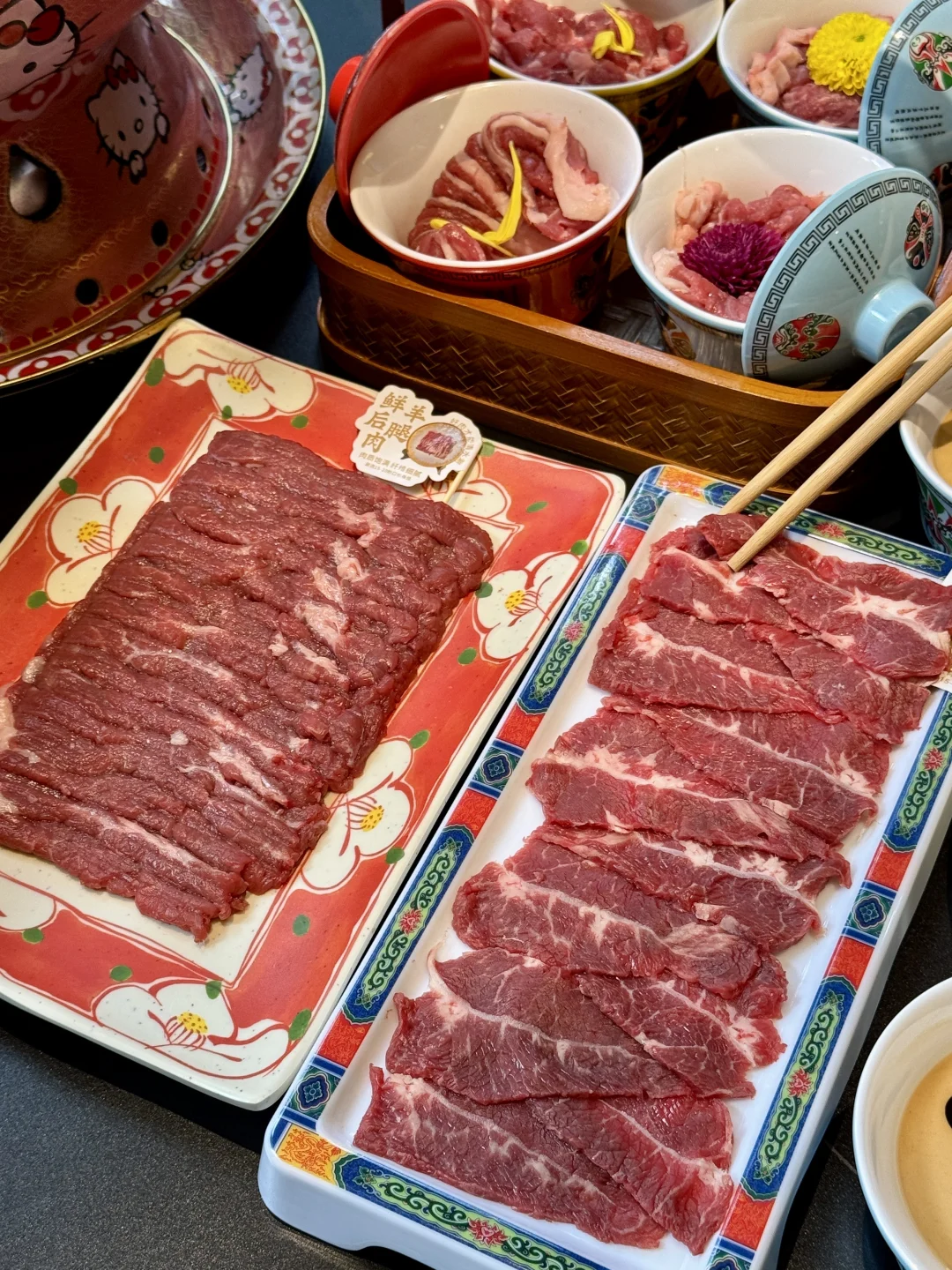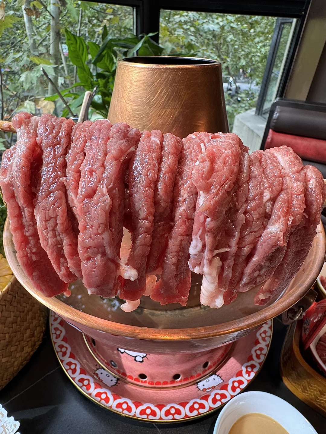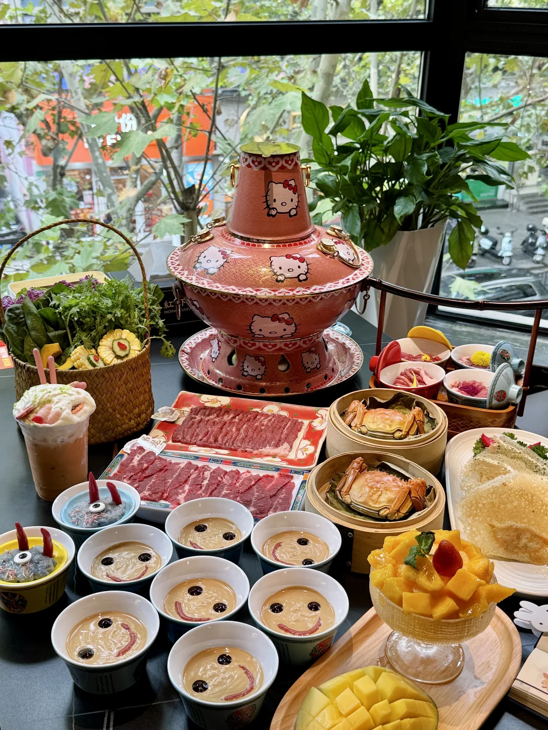 上海终于也有hellokitty铜锅涮肉啦!!! 万圣节快到了还出了幽灵奶茶👻小怪兽虾滑都好可爱 用着hellokitty锅涮热乎乎的涮羊肉真的好舒服!!!
