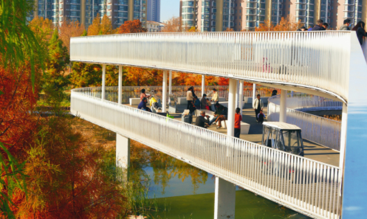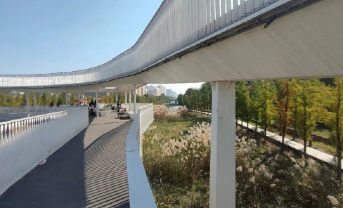 踏入城市活力廊道,秋日的激情与活力在这里肆意绽放。廊桥观景平台旁,芦苇随风轻摆,仿佛在诉说着秋日的故事。