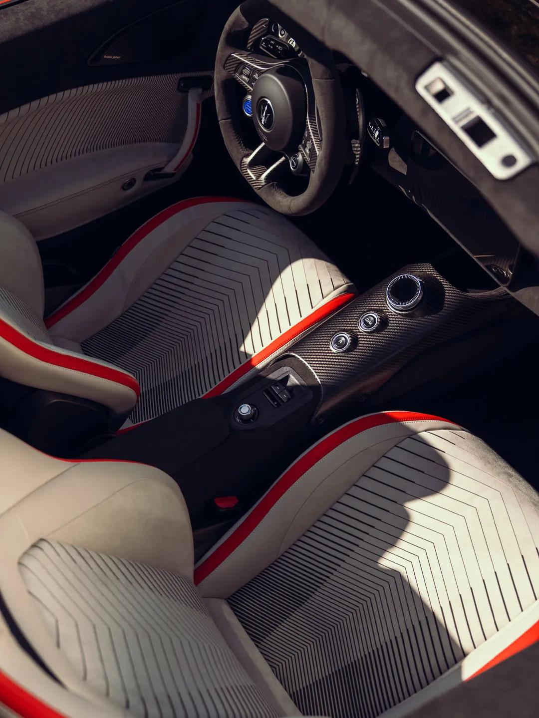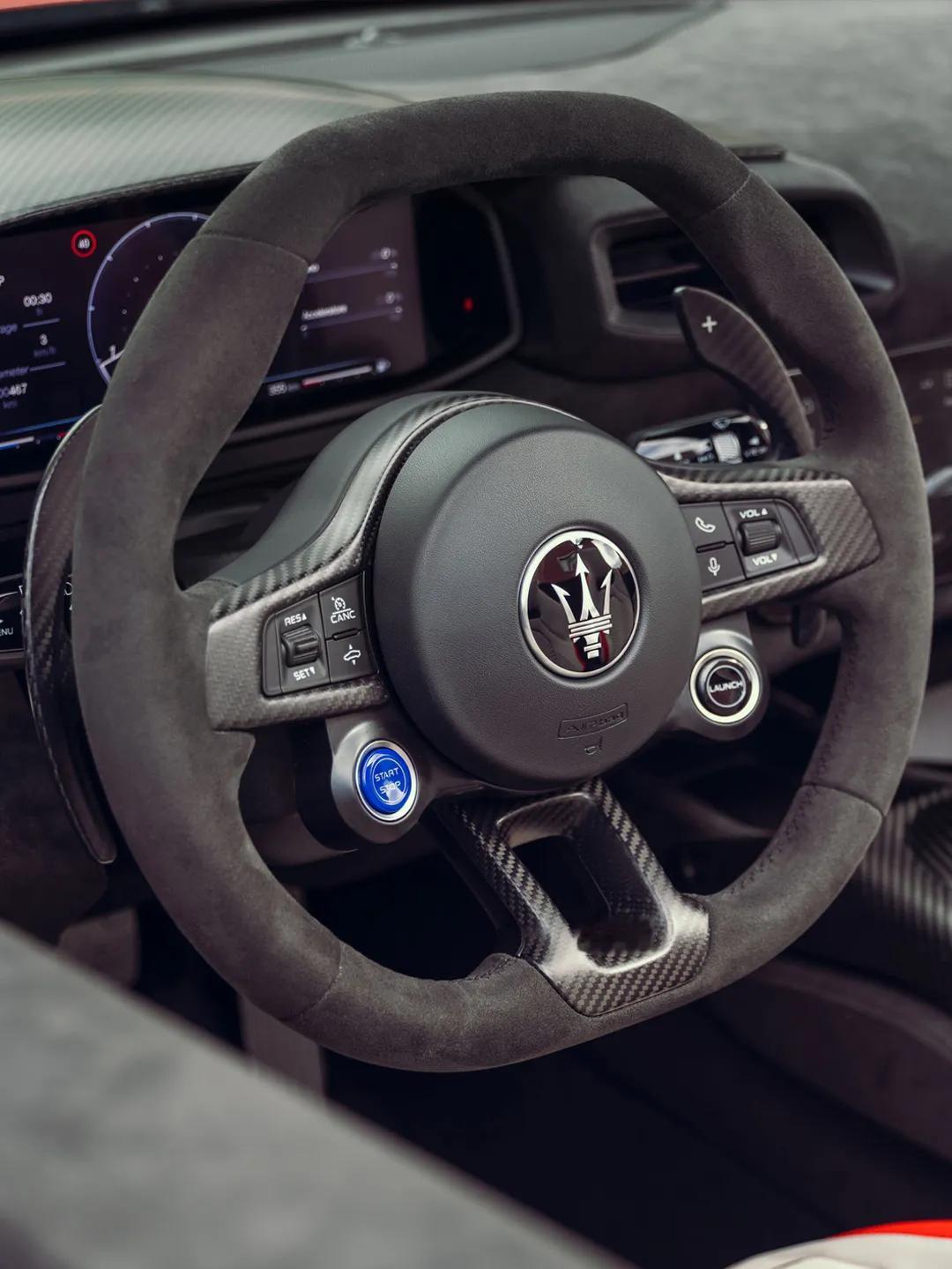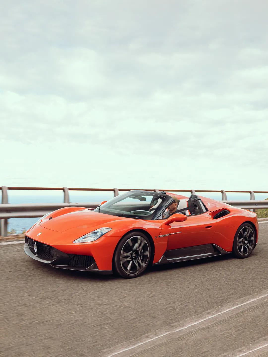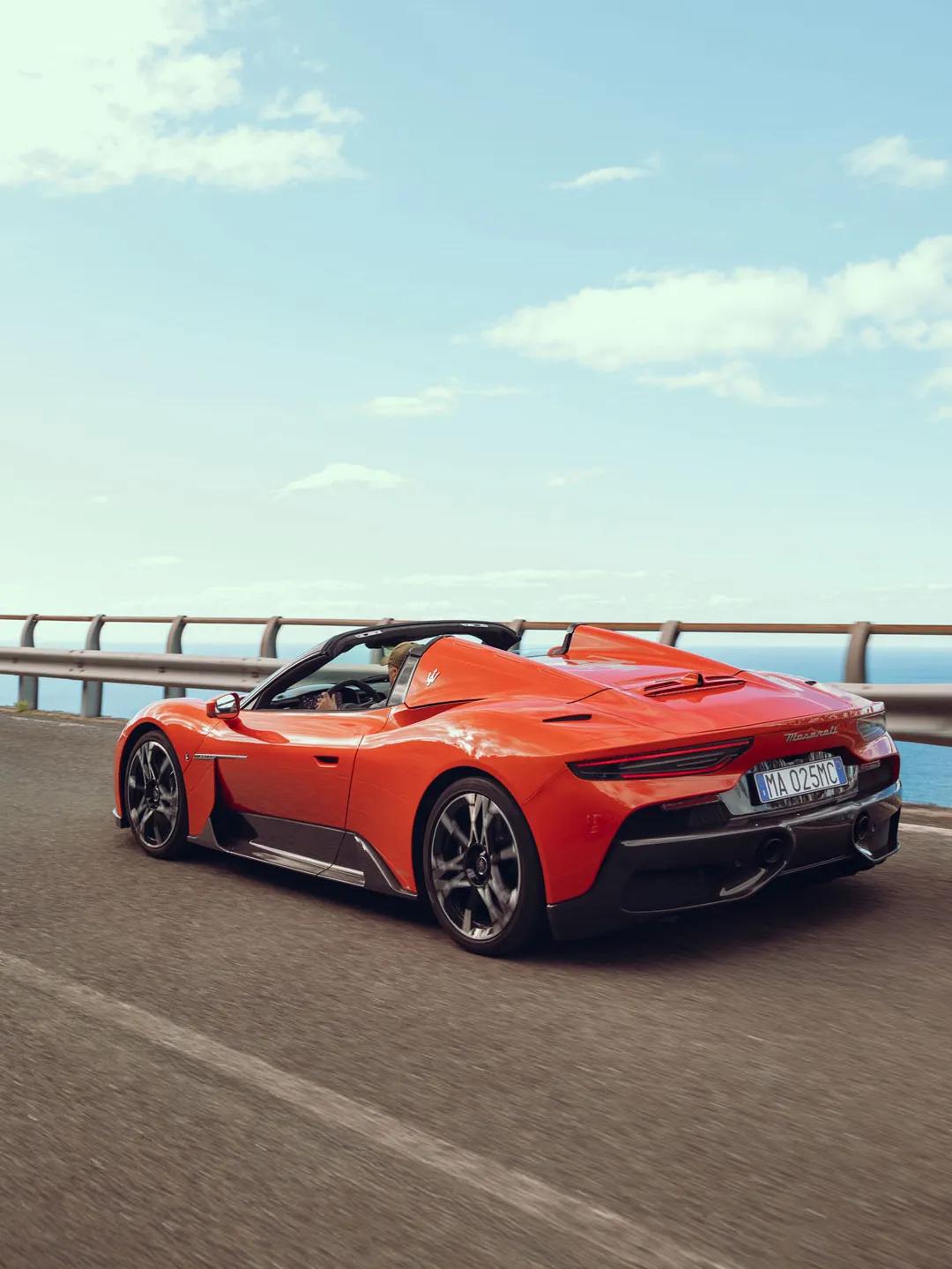 最近,意大利设计师Lorenzo Bianchi在摩德纳发布2026款Maserati MCPura Cielo Devil Orange敞篷超跑。新车沿用3.0升双涡轮V6“Nettuno”发动机,最大输出功率460千瓦,扭矩为730牛米,0-100公里/小时3.0秒,极速325公里;轴距2.67米,自重1540千克。配套使用19/20英寸锻造轮辋,车内Alcantara与碳纤维拼接。欧洲起价28万欧元,约合220万元人民币,全球限量150台,2026年一季度交付。