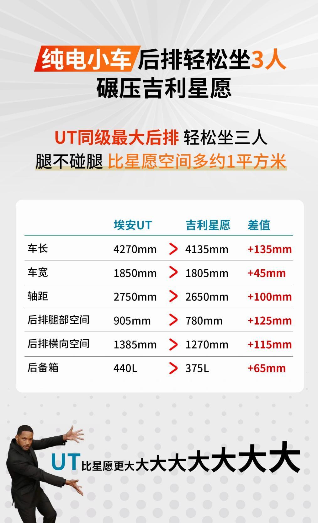 这台小车让全家出行体验翻倍!实测对比太震撼 现在买车就像选房子,得看 "得房率"! 今天带大家看看埃安 UT420 智享版,如何用紧凑车身装下越级空间,对比吉利星愿 UP410 探索版,谁才是真正拥有大空间。 UT 的 2750mm 轴距比星愿 UP 长了 100mm,后排腿部空间直接突破 905mm。 实测三个 1 米 8 的壮汉并排坐,膝盖离前排还有两拳距离,中间乘客终于不用当人肉隔板。 星愿 UP 的 2650mm 轴距虽然够用,但横向空间明显局促,三人出行得挤来挤去。 最让我惊喜的是 UT 的座椅设计,前排放倒秒变 1.8 米大床,带娃郊游时能当临时休息室。后排座椅还支持角度调节,长辈坐车也能找到舒适姿势。 星愿 UP 的座椅虽然材质不错,但固定角度设计长时间乘坐容易腰酸。 后备箱空间 UT 更是碾压级表现,440L 容积能装下 4 个行李箱加婴儿车,星愿 UP 的 325L 后备箱,装完露营装备就没剩多少地儿了。 偷偷说,UT 车身采用高强度钢占比 71%,安全这块也是妥妥的。 现在购车可享国补 1.5 万,叠加优惠后仅需 6.88 万,还送价值 5000 元的智行升级礼包。这样能装又能打的小车,难怪被称为 "家庭出行终极答案"! 埃安UT 吉利星愿 大一圈高级很多