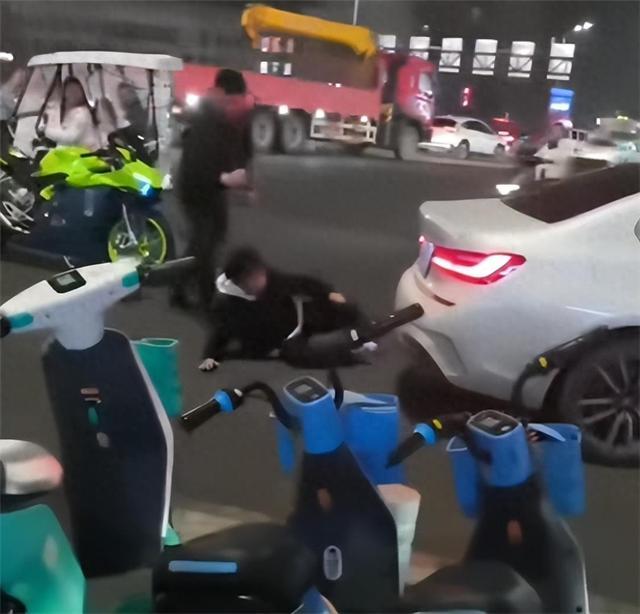 在路口处,摩友向沃尔沃驾驶员质问,“你没看到车道引导线吗?”但沃尔沃驾驶员立即下车,并当面辱骂摩友。