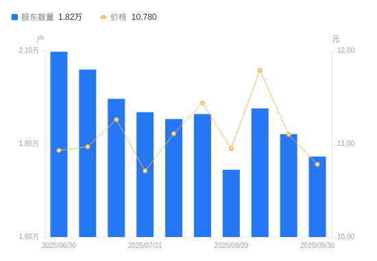 日期A股户数(户)流通A股户均持股数(股)户均持股市值(万元)2025-09-101945010000.6811.792025-08-291780710923.4211.962025-08-201930110077.8911.532025-08-081916710148.3411.272025-07-311934910052.8910.772025-07-18197079870.2611.112025-07-10204949491.2310.412025-06-30209749274.0210.142025-06-20197509848.779.852025-06-10214459070.339.71